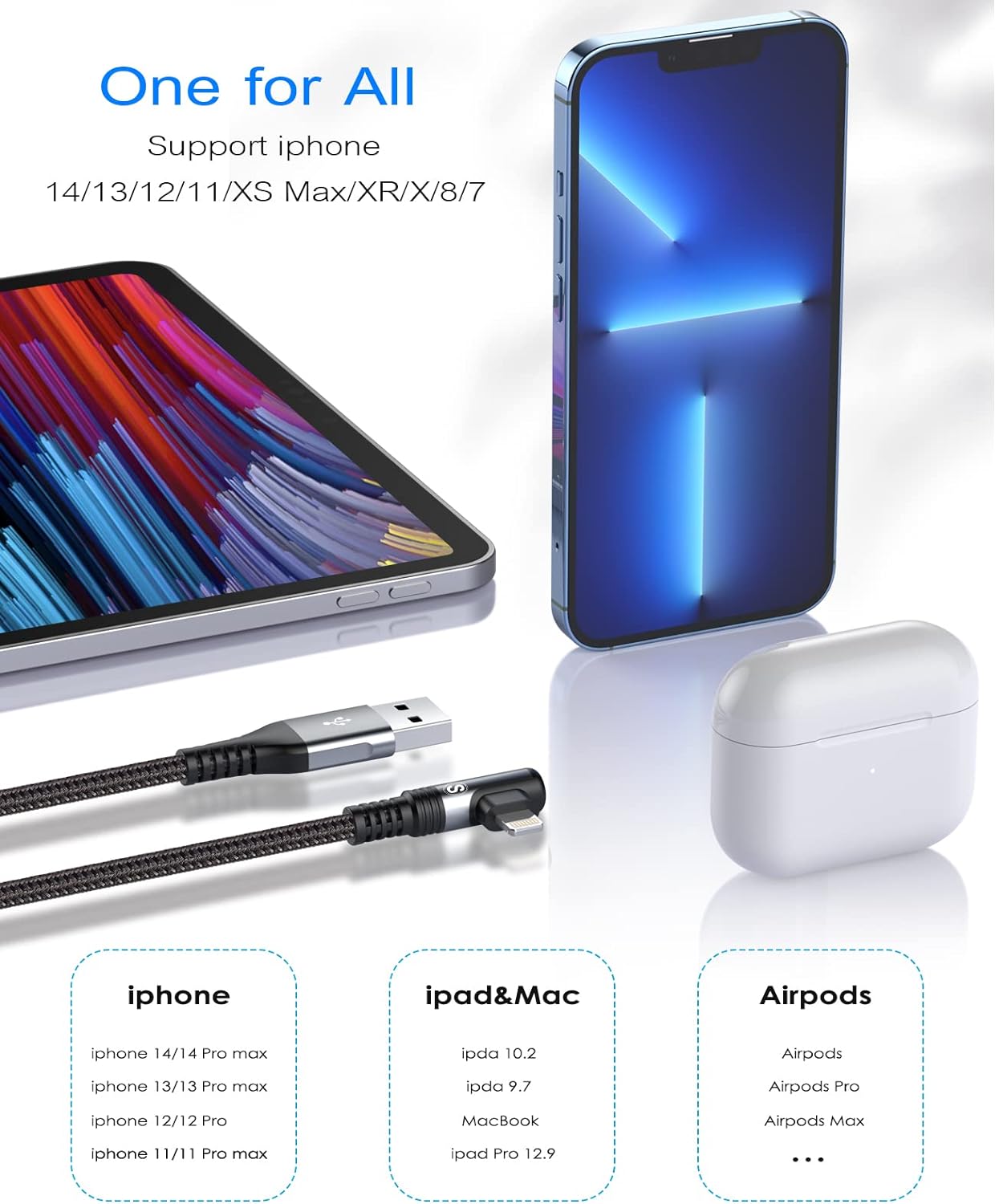 ⚡【𝐒𝐮𝐩𝐞𝐫 𝐃𝐮𝐫𝐚𝐛𝐢𝐥𝐢𝐭𝐲 𝐚𝐧𝐝 𝐅𝐥𝐞𝐱𝐢𝐛𝐢𝐥𝐢𝐭𝐲】The usb a to lightning cable with premium double nylon braided design, it is durable and stronger than other cords on the market.Cord has different sizes to meet the needs of different people for different lengths and Scenes of charging cables.