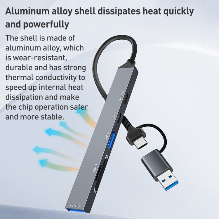 ADS-807D 6 in 1 USB + Type-C to PD100W + USB3.0/2.0 + SD/TF HUB Docking Station(Space Grey)