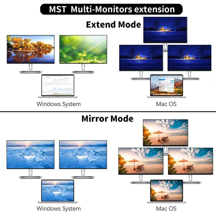 1. HDMI resolution: 4K30HZ/1080P60HZ supports MST multi-screen display