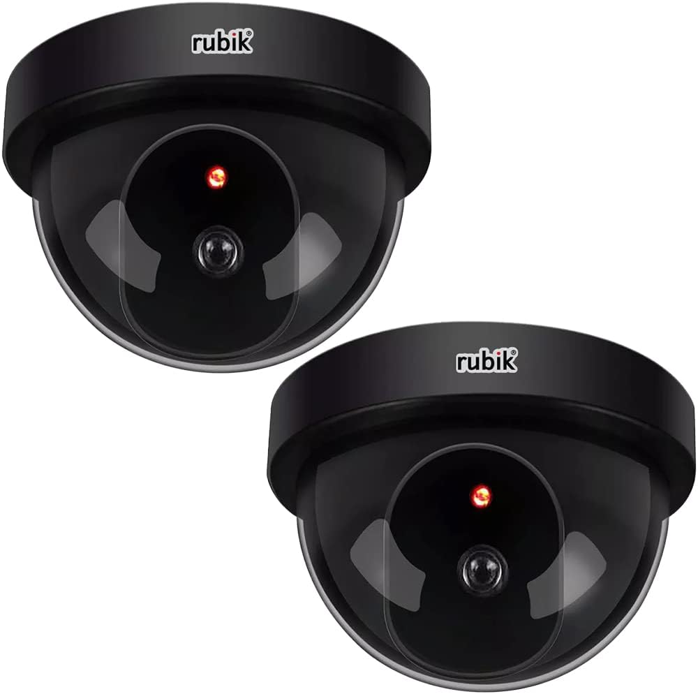 Rubik 2pcs Dummy Security Cameras with Flashing LED Light Fake CCTV Surveillance Simulation Camera Security Indoor Dome Camera with LED Light (Basic, Black)
