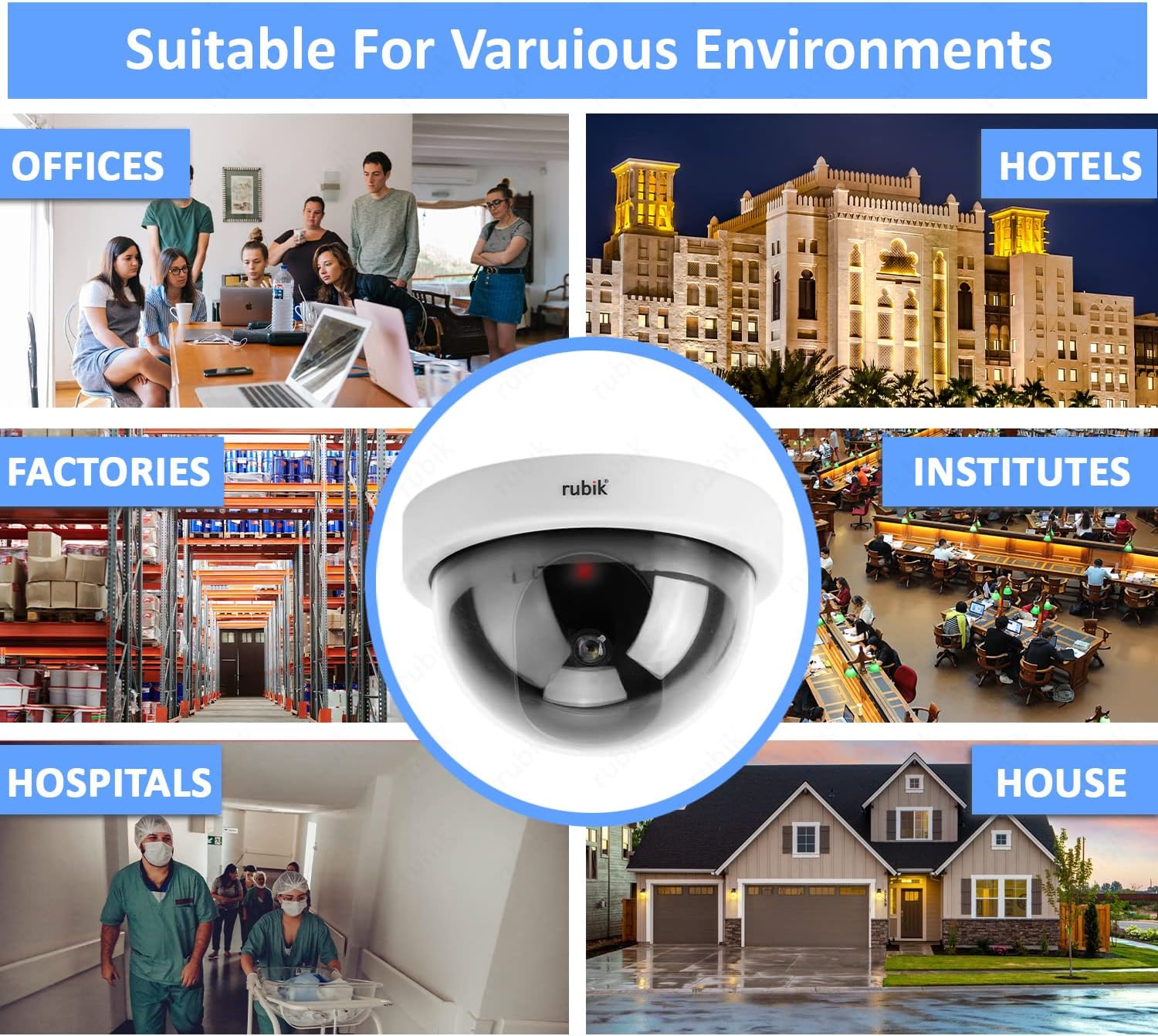 This is Basic model of dummy camera, Inexpensive solution for basic security. Rubik fake Dome cameras with activity light gives high resemblance to real CCTV cameras.