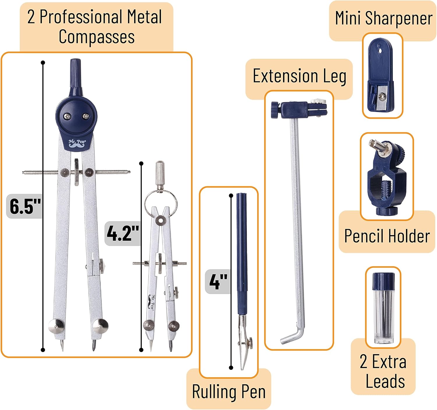 - 📦 Complete Compass Set: This set includes 2 professional-grade compasses, an extension beam, interchangeable attachments, and a versatile slip handle suitable for pens, pencils, stylus, or markers. Ideal for a variety of applications from drafting to detailed art work.
