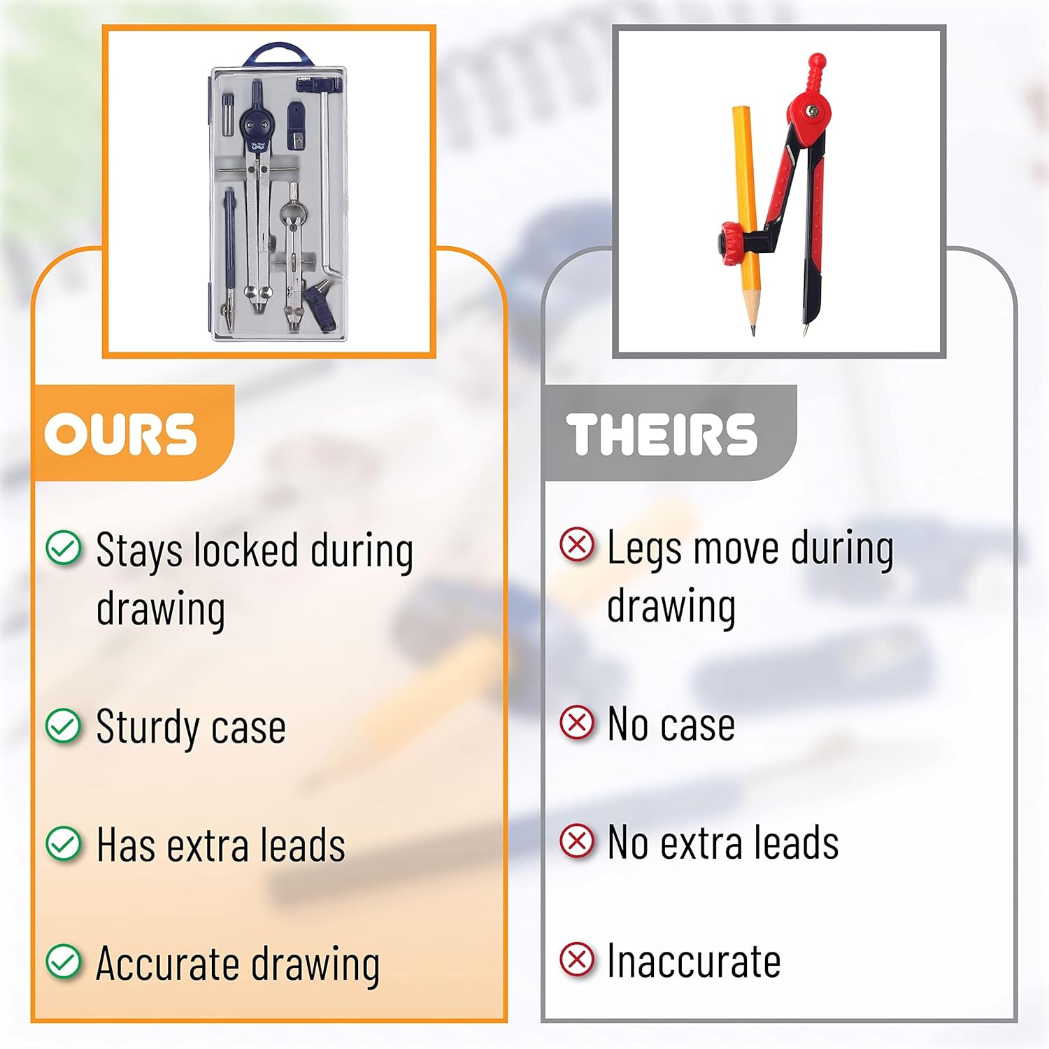 - 🔧 Precision and Stability: Designed with a spring bowhead and a center wheel, these compasses offer precise adjustments and stable movement, ensuring that the legs remain in place during use to maintain accuracy.