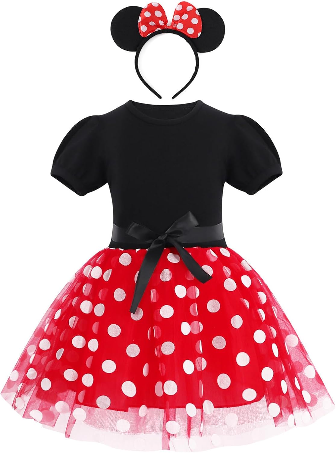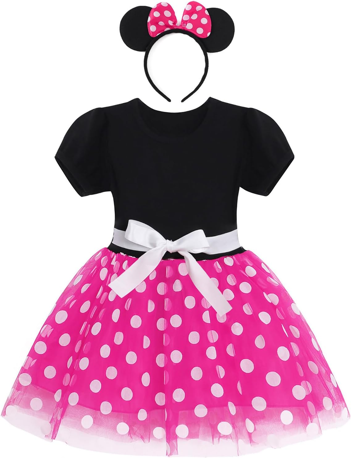 - Matching Headpiece: 3D bowknot ears headpiece, playful and cute. Become her favourite character instantly in this girls polka dot costume.