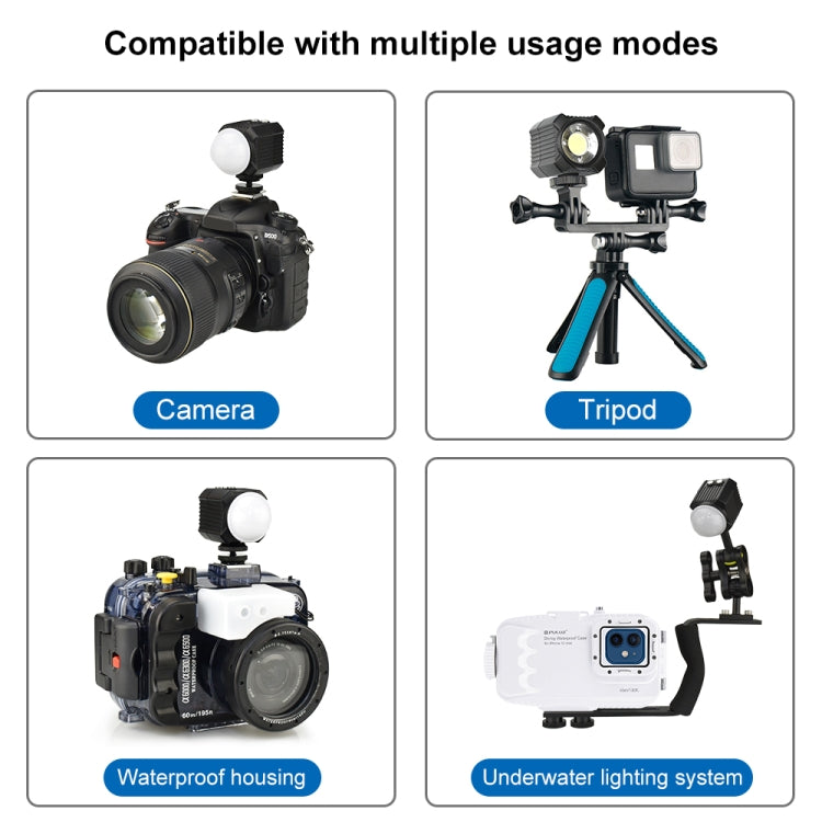 PULUZ 60m Underwater LED Photography Fill Light 7.4V/1100mAh Diving Light for GoPro, Insta360, DJI and Other Action Cameras(Black)