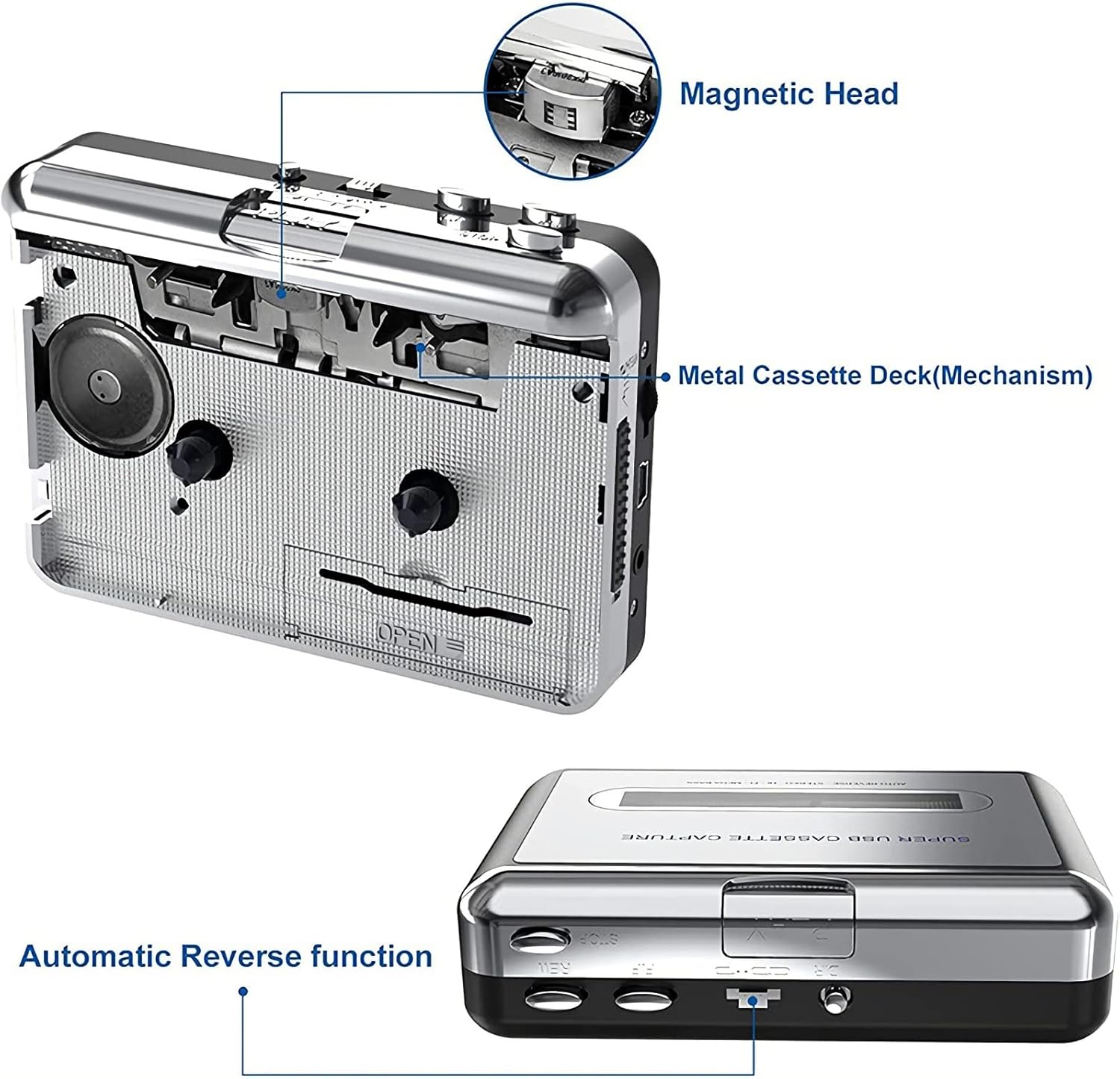 【USB CASSETTE CAPTURE】 -- You can easily Record, Captures,convert your old tape to MP3 format,with playback function for easily checking the recorded file. USB port supports FAT, FAT32, exFAT formats up to 64G.