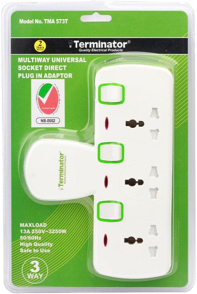 Terminator 3 Way Universal T-Socket Multi Adaptor With Individual Switches & Indicators 13A Plug and Safety Shutter ( TMA 573T)