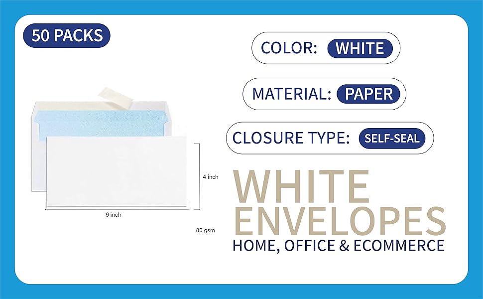 PACKAGE INCLUDES: You will receive a convenient pack containing 50 white self-sealing envelopes, each measuring 4" x 9", offering an ample supply for your mailing and organizational needs.