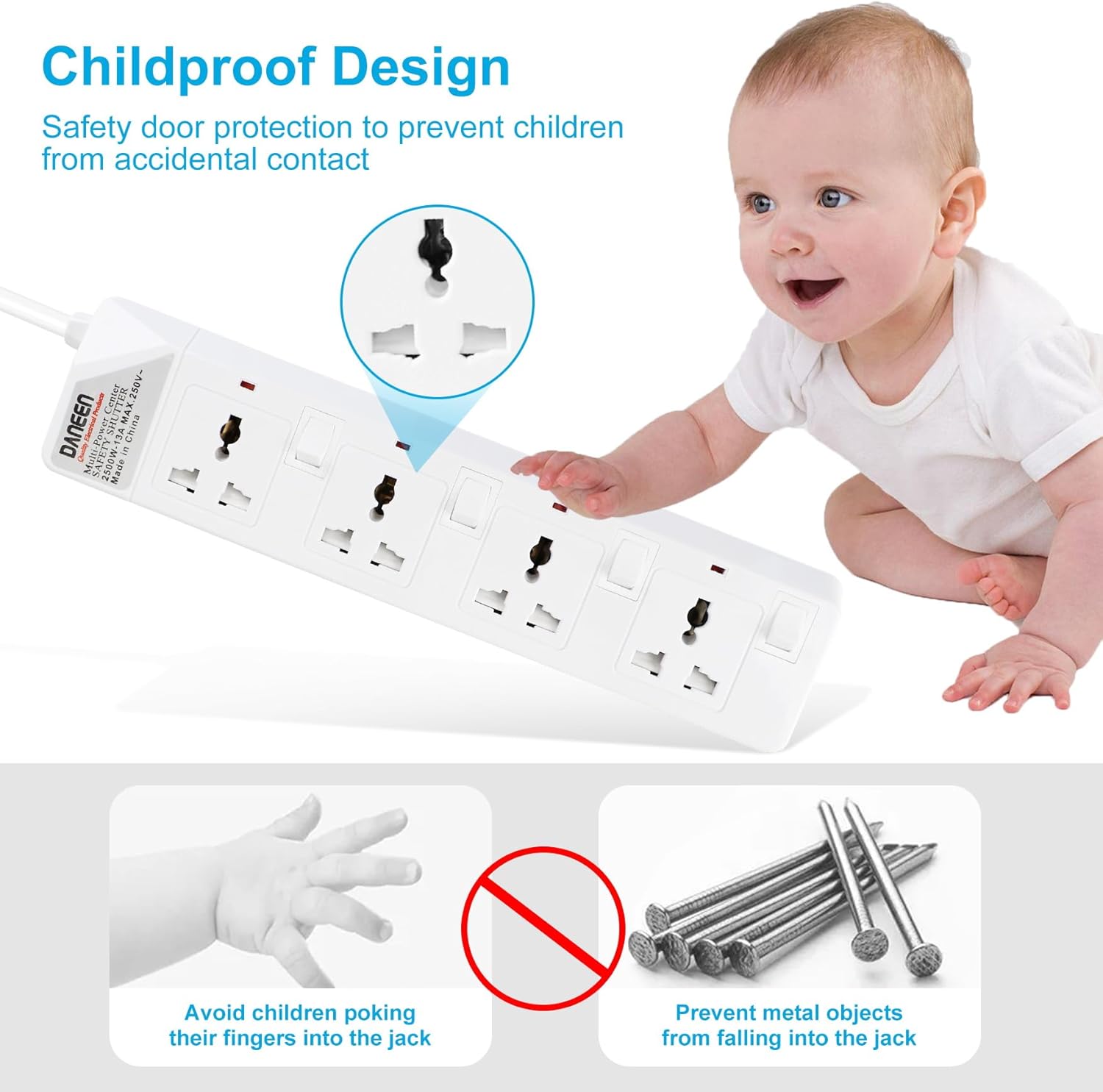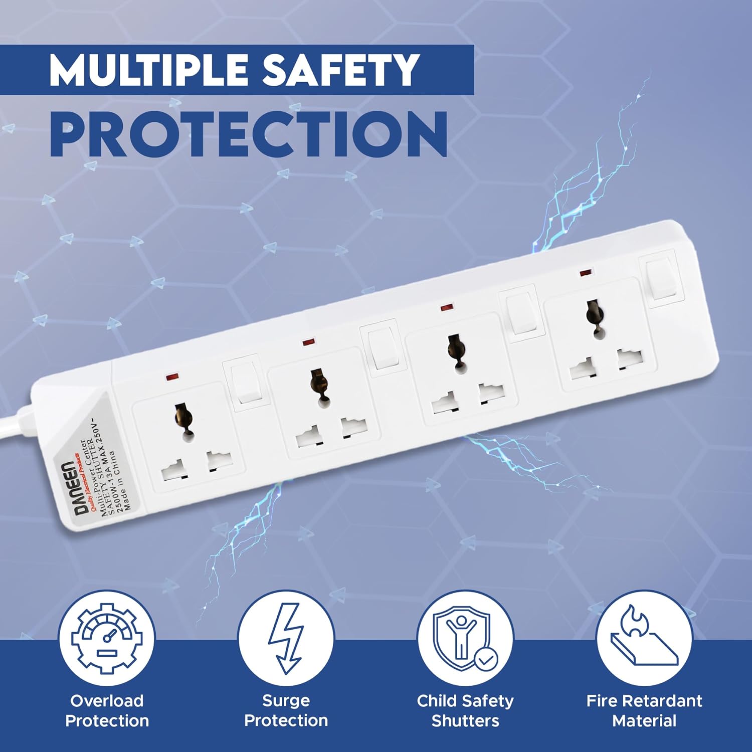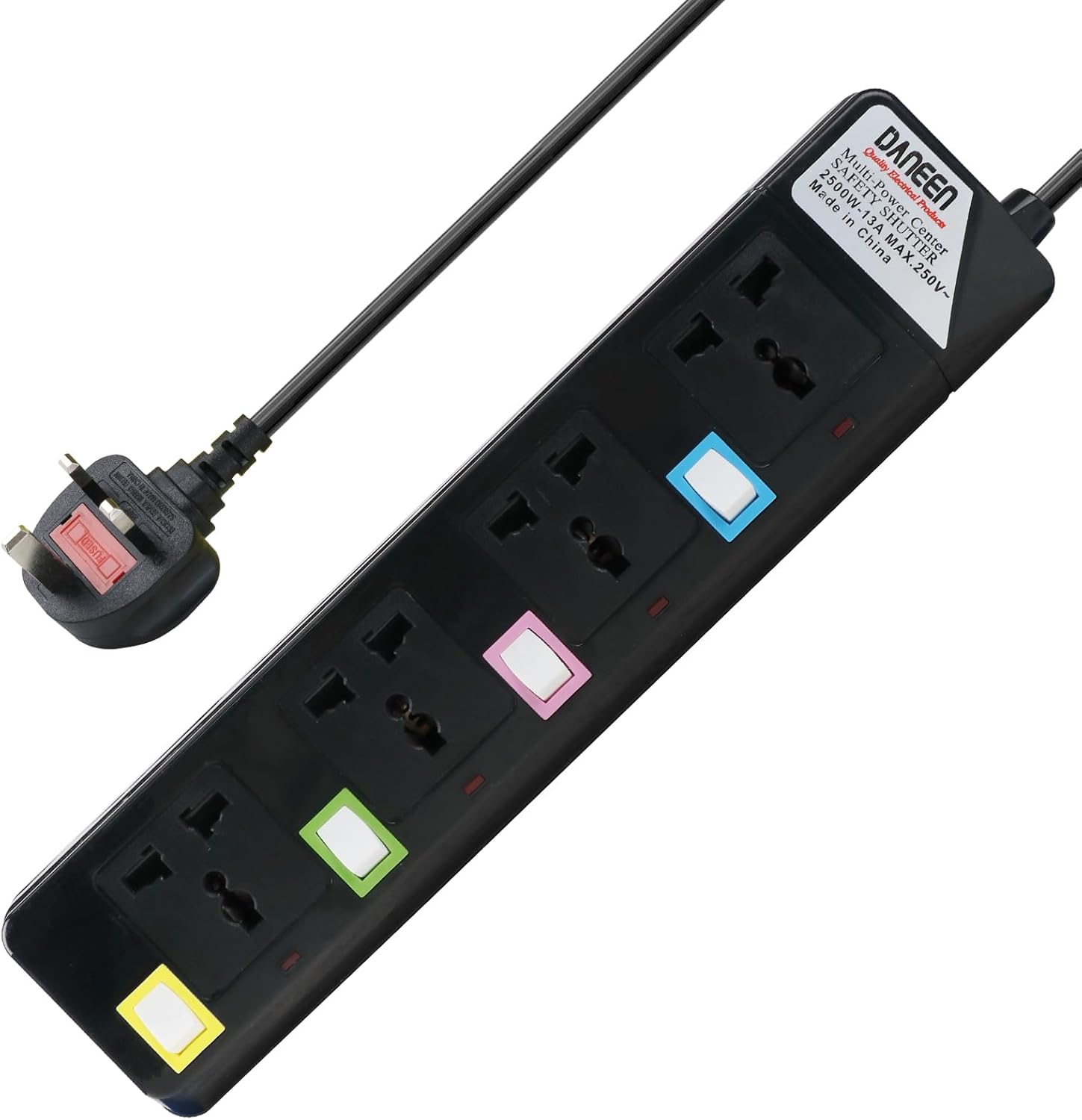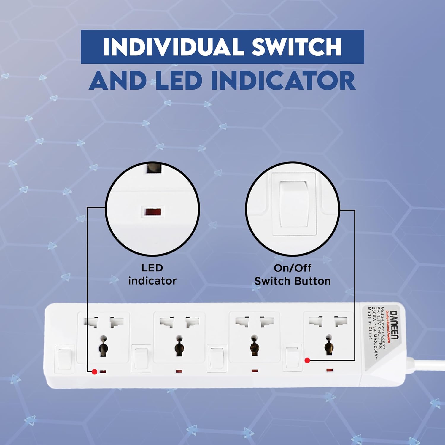 Versatile power extension cord socket with individual switches: Easily expand the number of available power outlets and control each device independently with the convenient individual switchesVersatile 4-way power extension cord socket with individual switches: Easily expand the number of available power outlets and control each device independently with the convenient individual switches