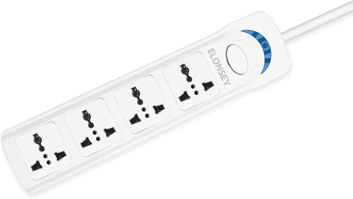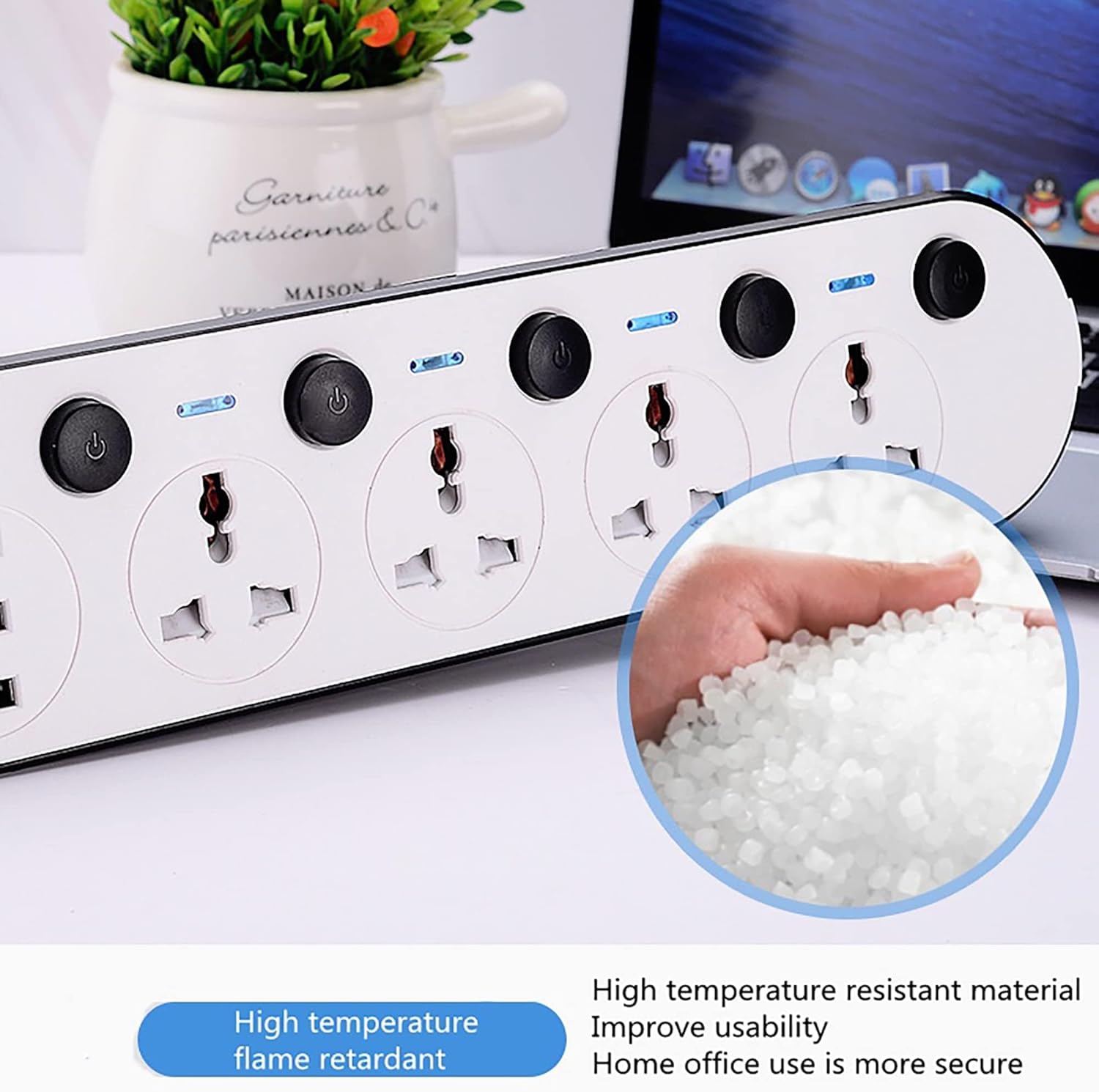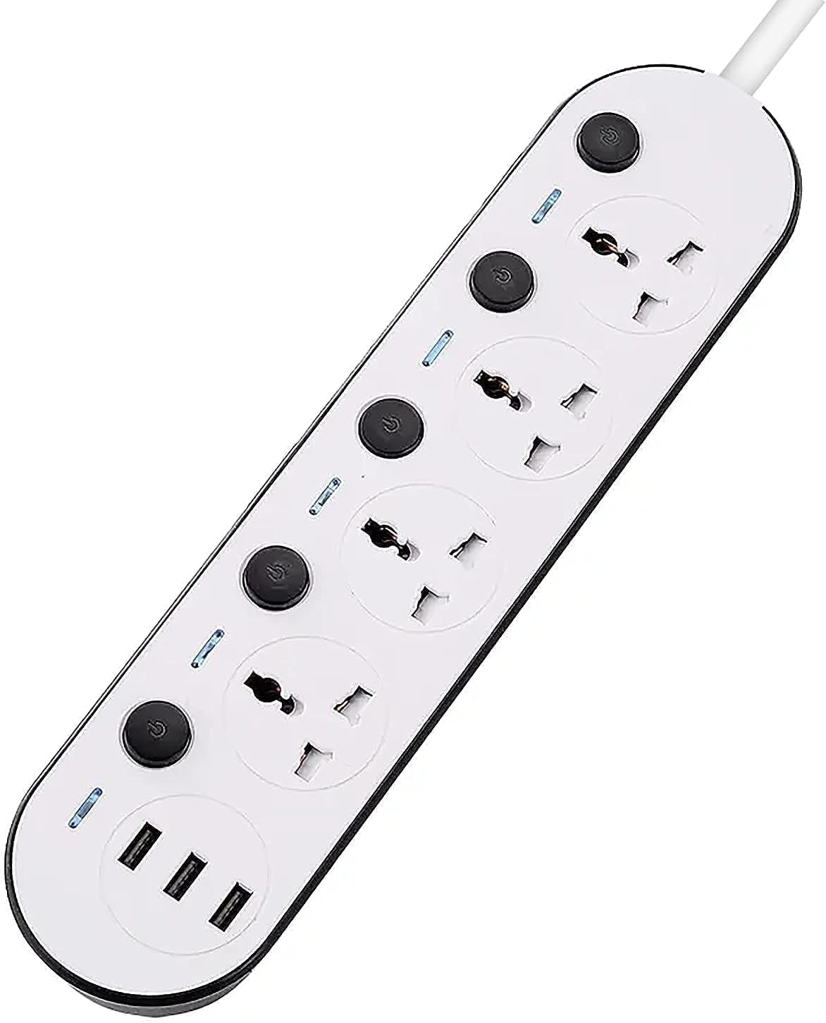 ELONSEY 5 Meter Universal Power Extension Cord with 4 Outlets and 3 USB Ports, Power Strip with Surge Protection, Heavy Duty Universal Extension Lead - White