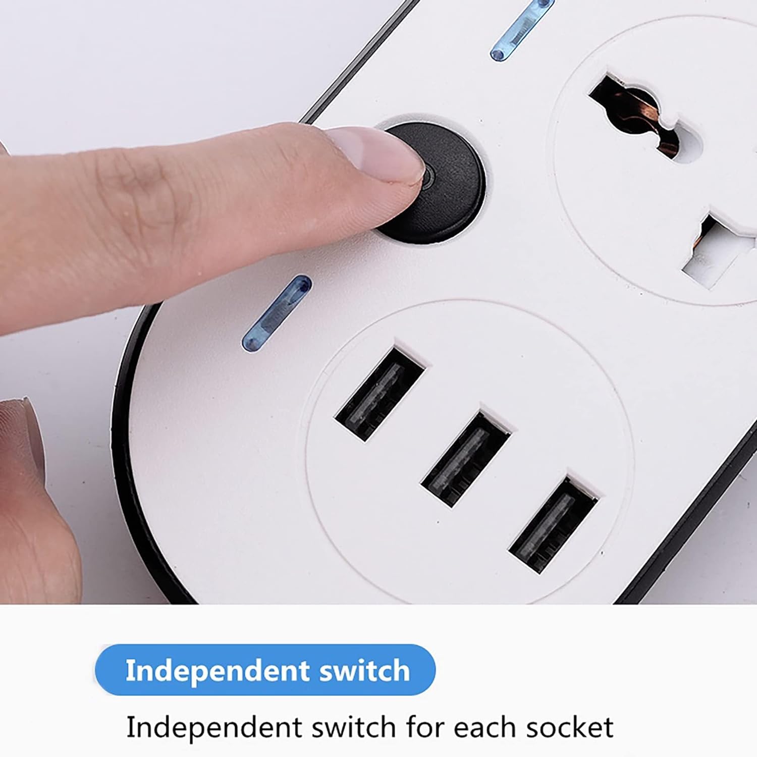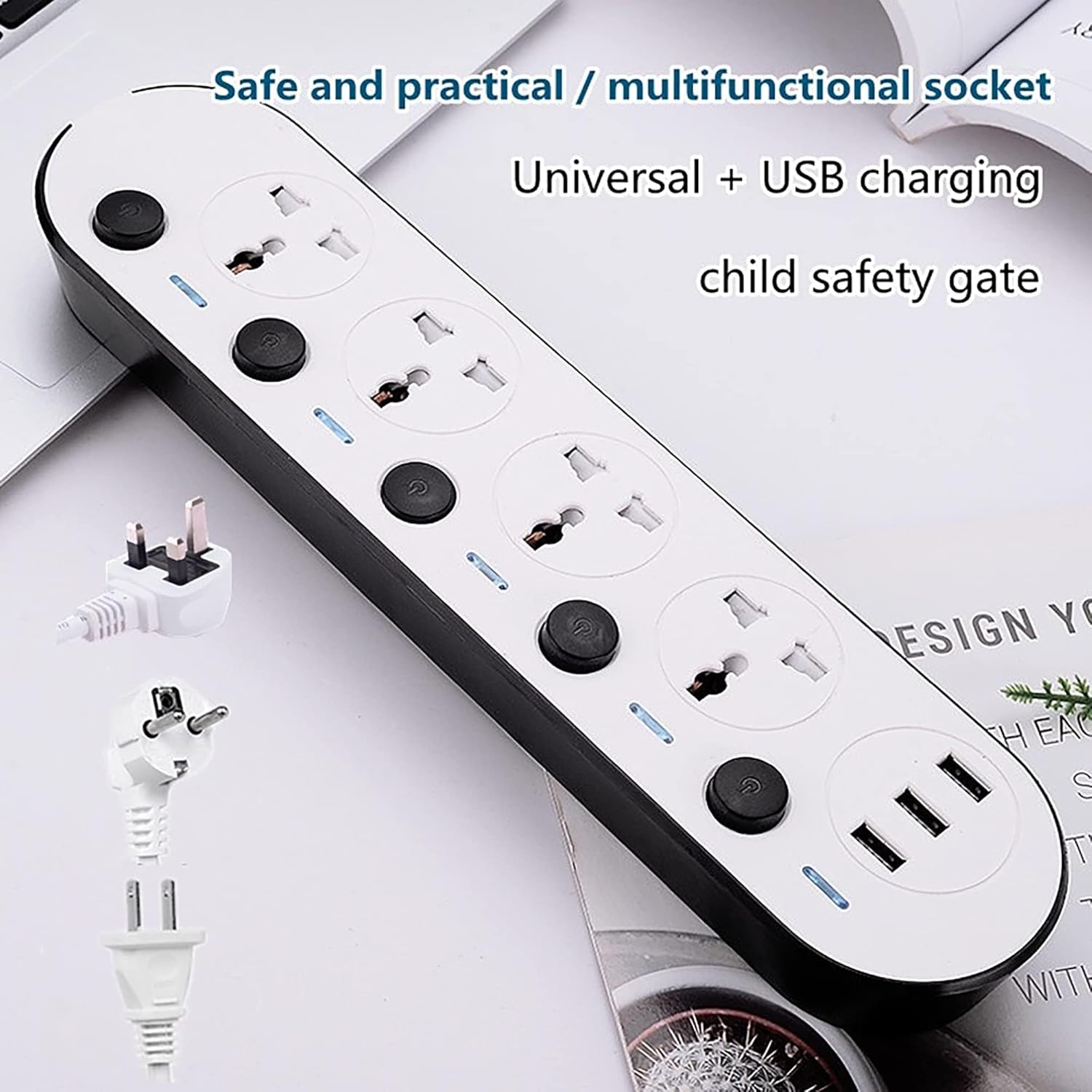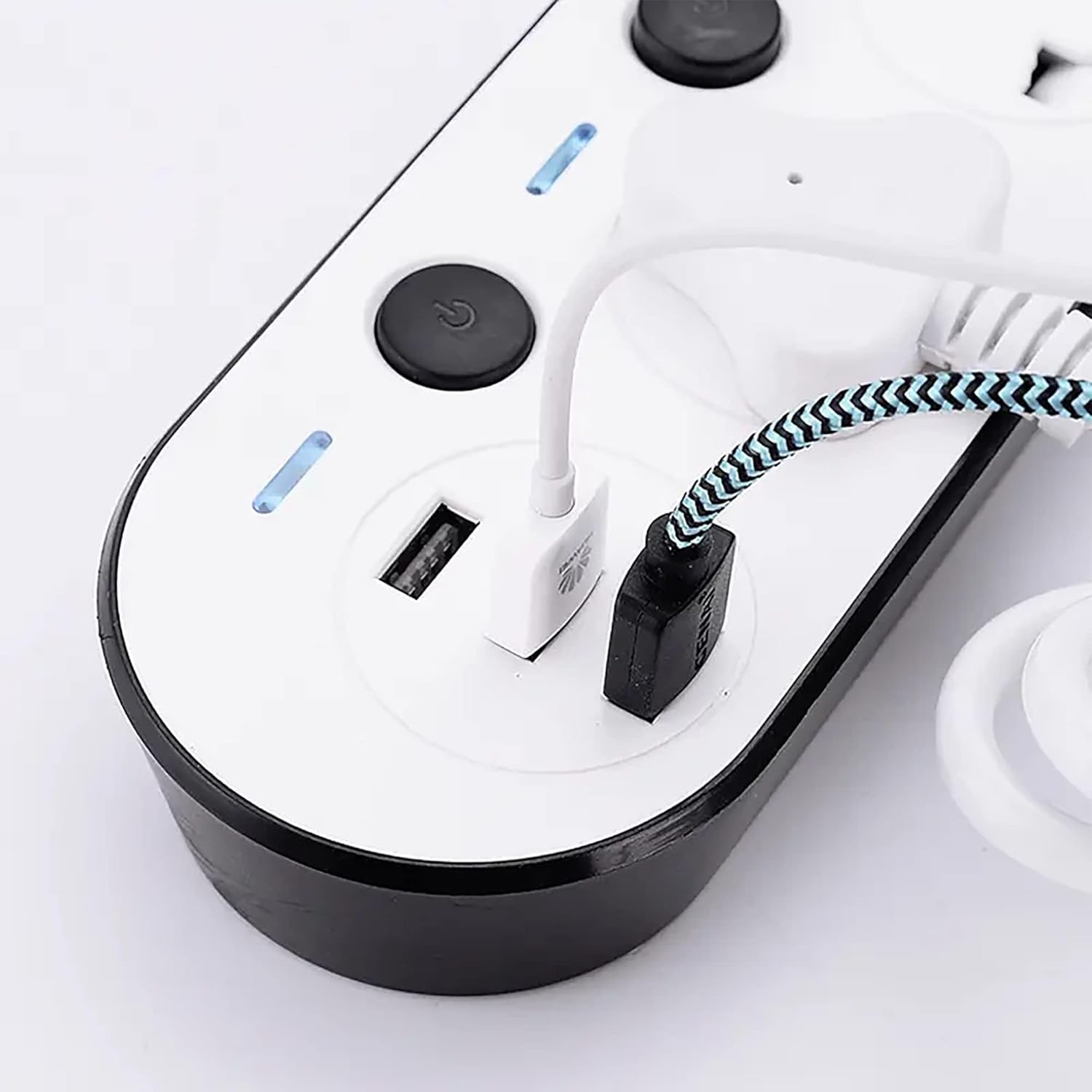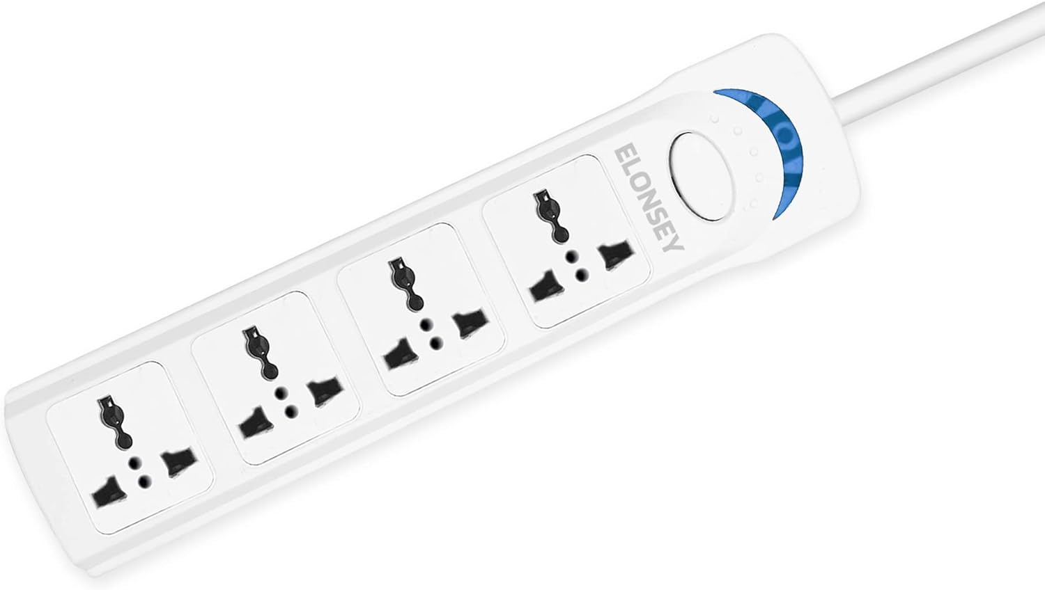 ELONSEY 5 Meter Universal Power Extension Cord with 4 Outlets and 3 USB Ports, Power Strip with Surge Protection, Heavy Duty Universal Extension Lead - White