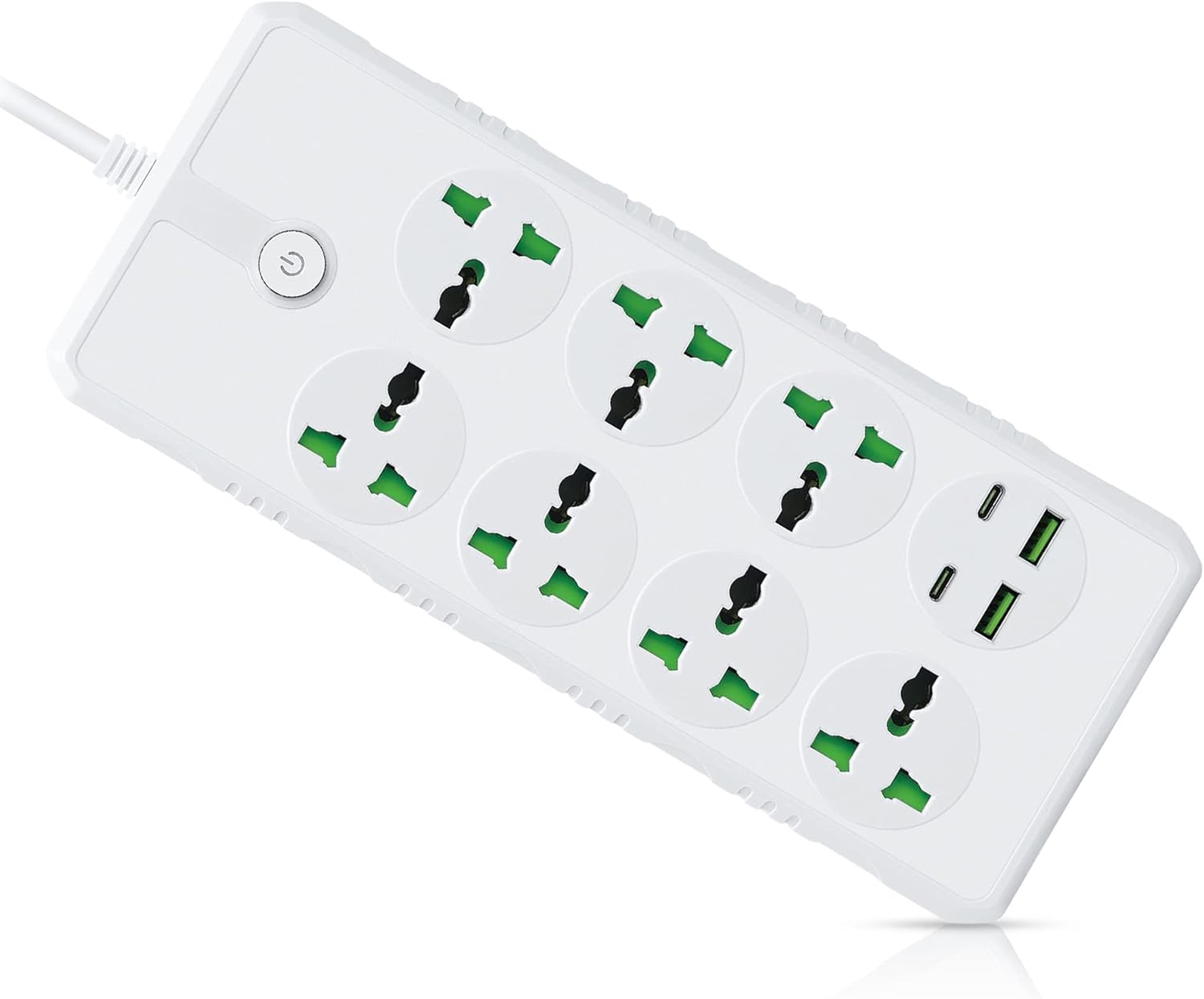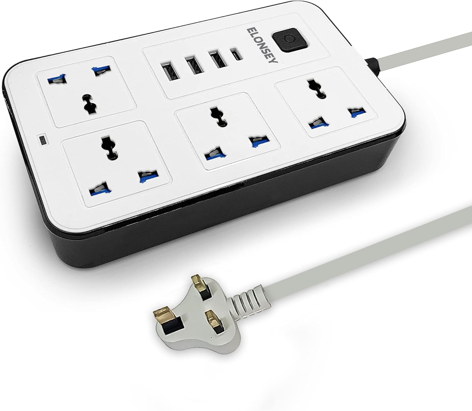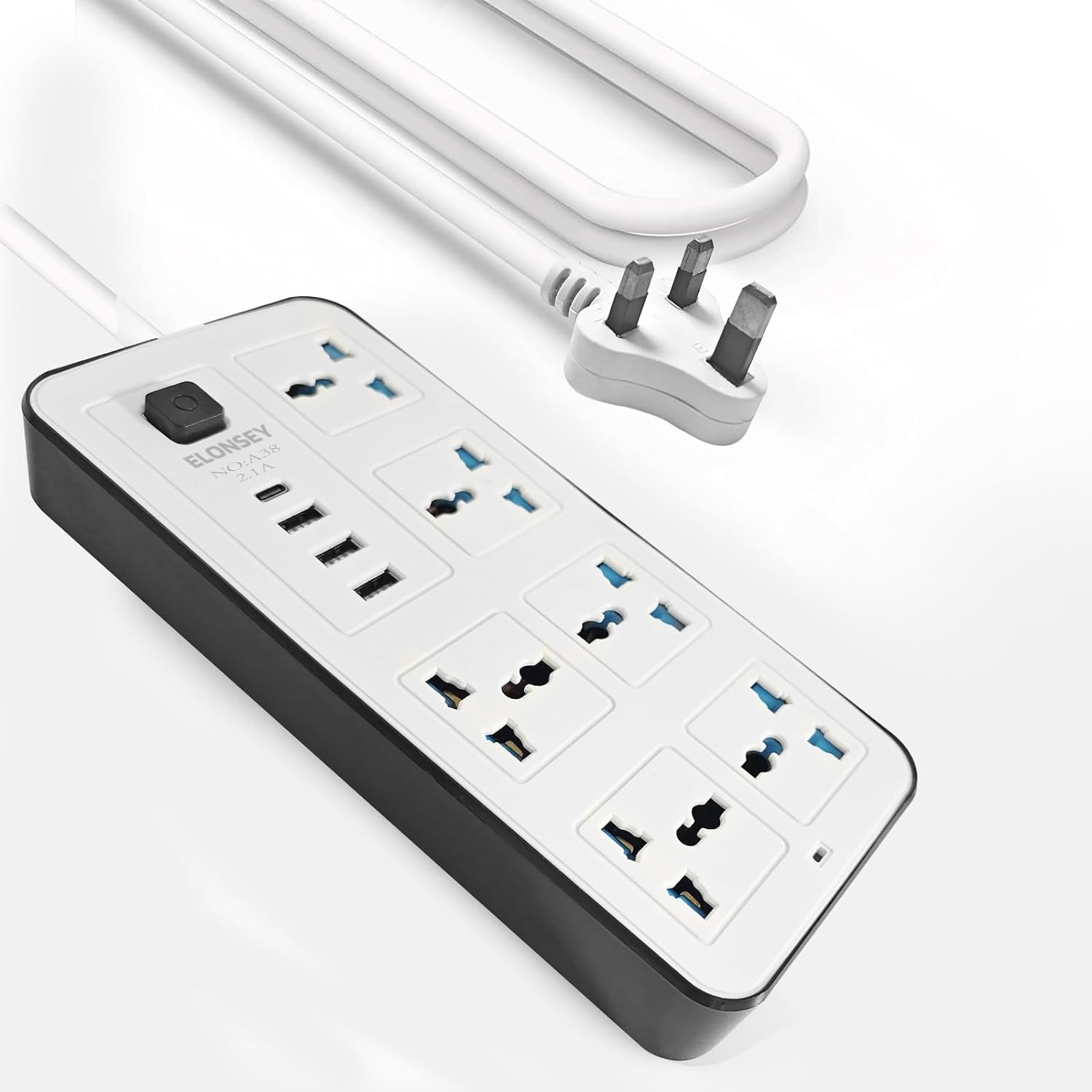6 in 1 Power Socket Extension: 3 universal outlets, 3 USB A slots in one plug extension enable you to power up 6 devices simultaneously, which is ideal for chaging multiple devices at home, office, garage, entertainment systems. The adapter can provide a rated power of 2500W and the widely spaced sockets are separated enough to fit big plugs without blocking each other.