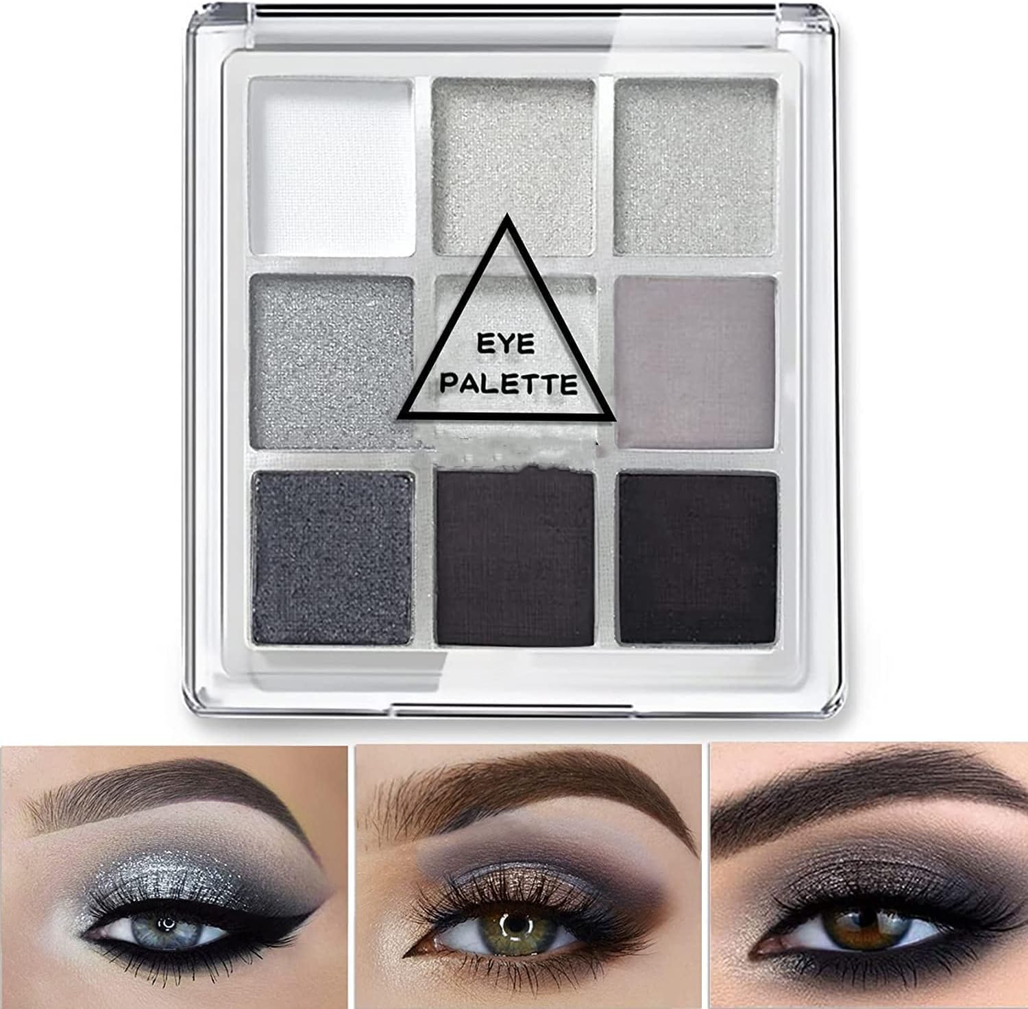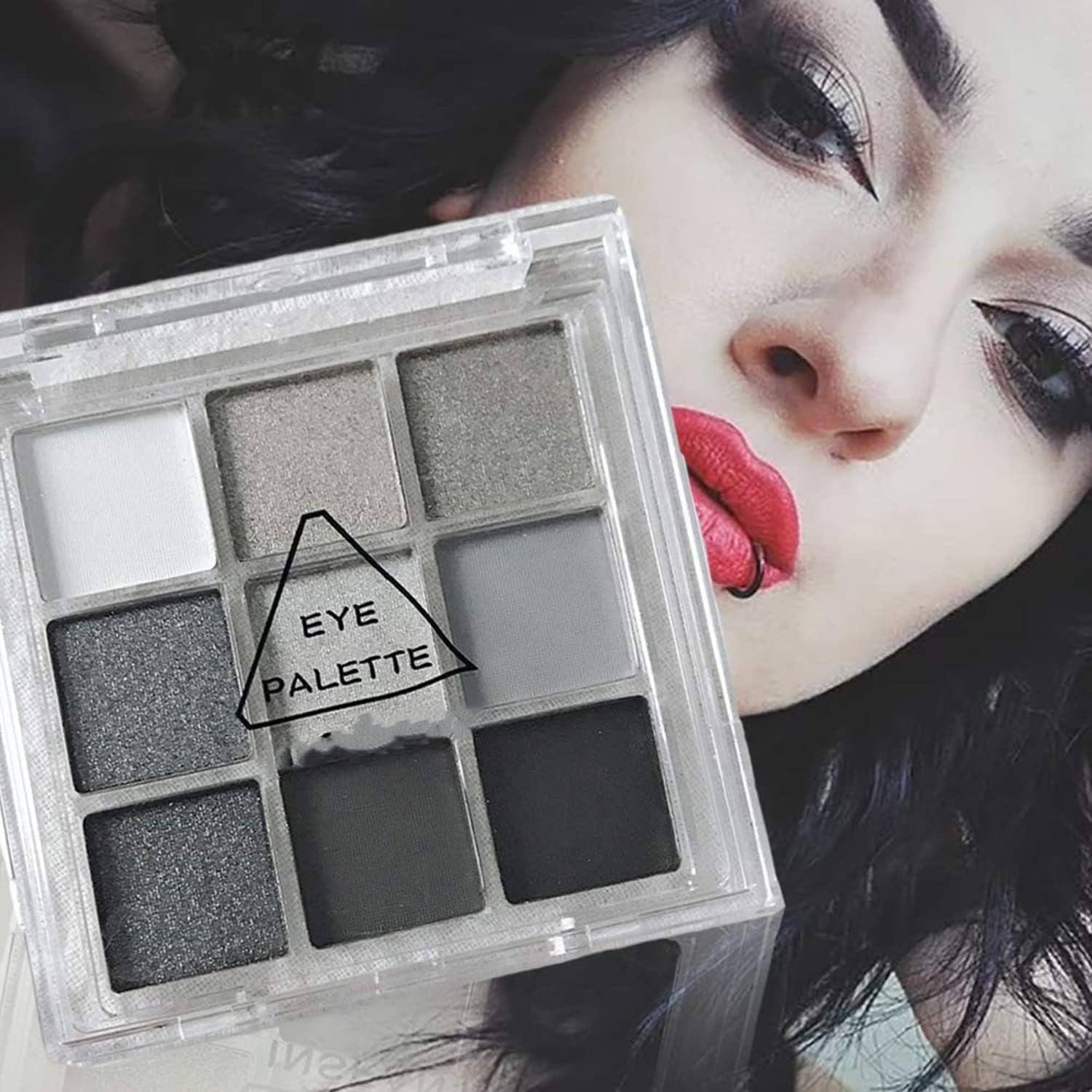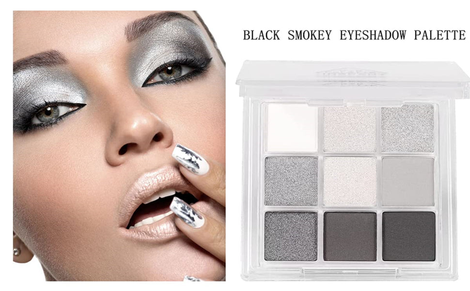 Black Grey Silver Smokey Eyeshadow Palette 9 Colors Cool Toned Matte Glitter Eyeshadow Palette Longlasting Waterproof Smoky Eye Shadow for Girls and Women (Set 1, Black Grey Silver)