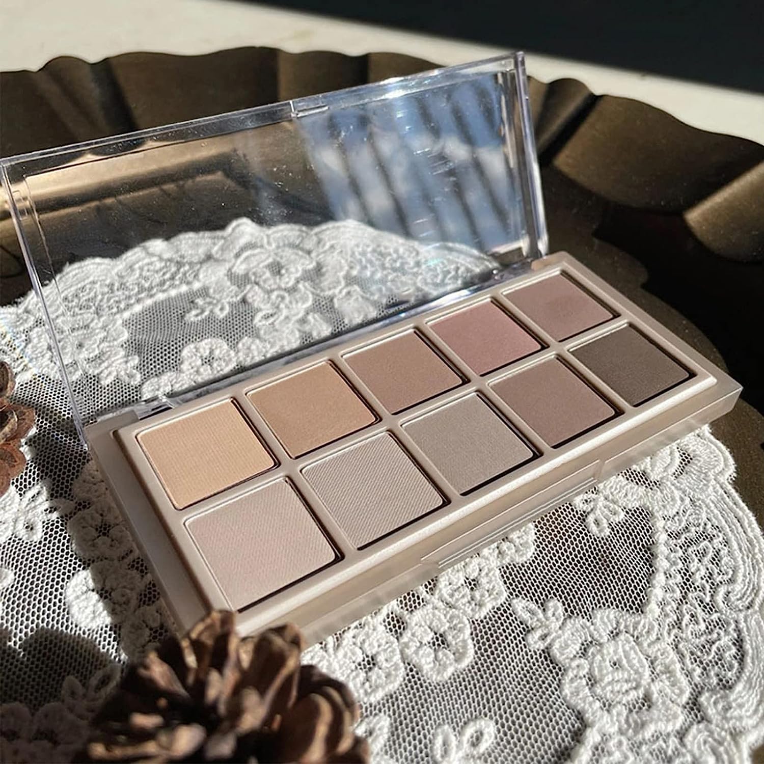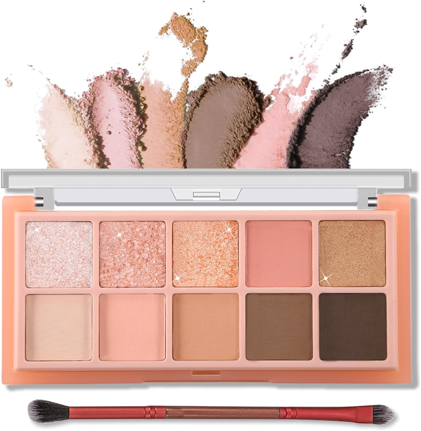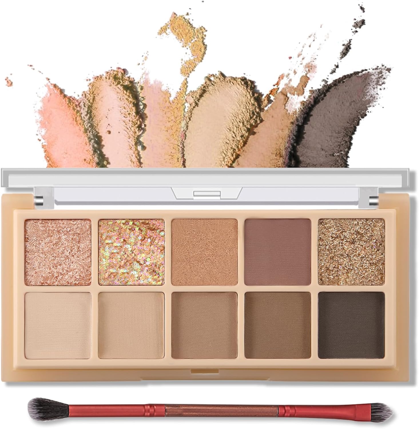 【Professional Neutral Tones】This 10-color Eyeshadow Palette features a range of warm and cool tones, from soft mattes to shimmery glitters. Create versatile looks with ease, perfect for both makeup beginners and professionals.