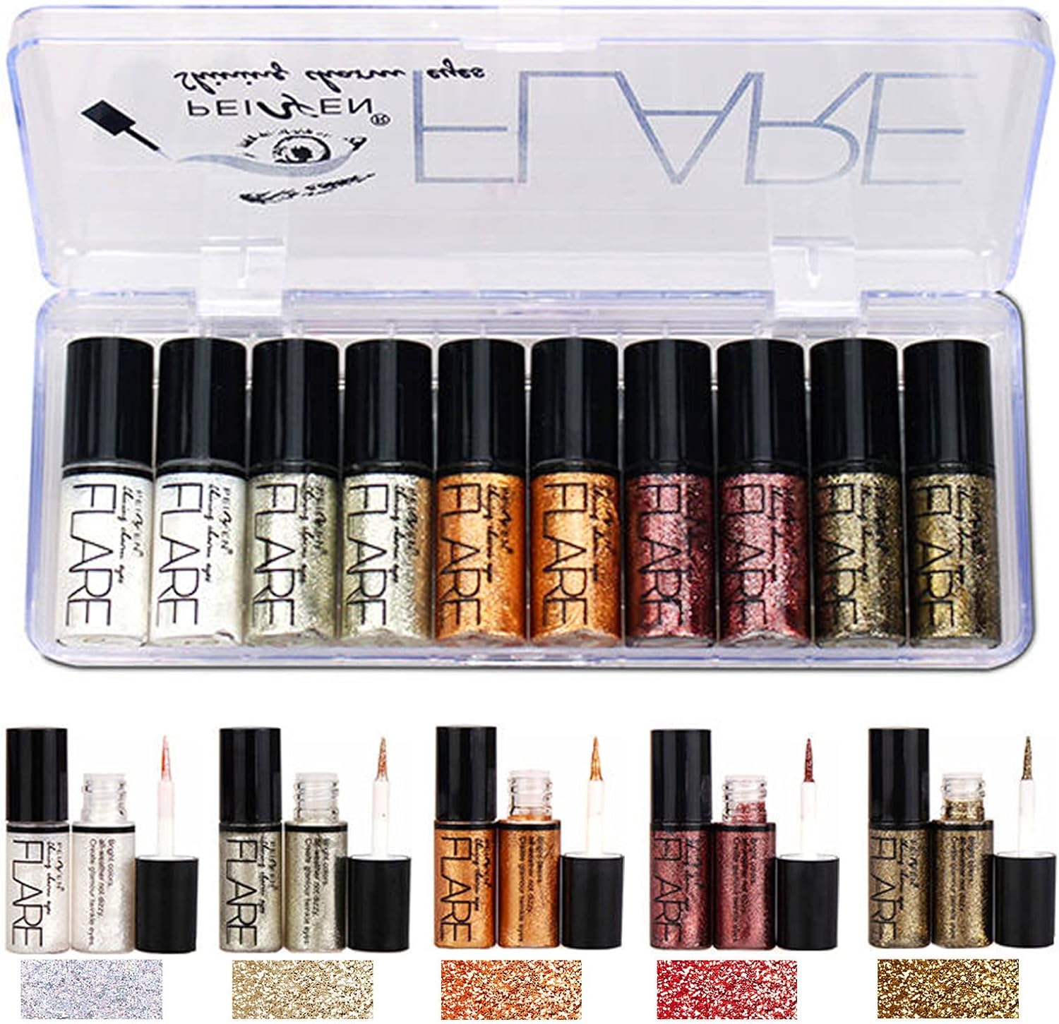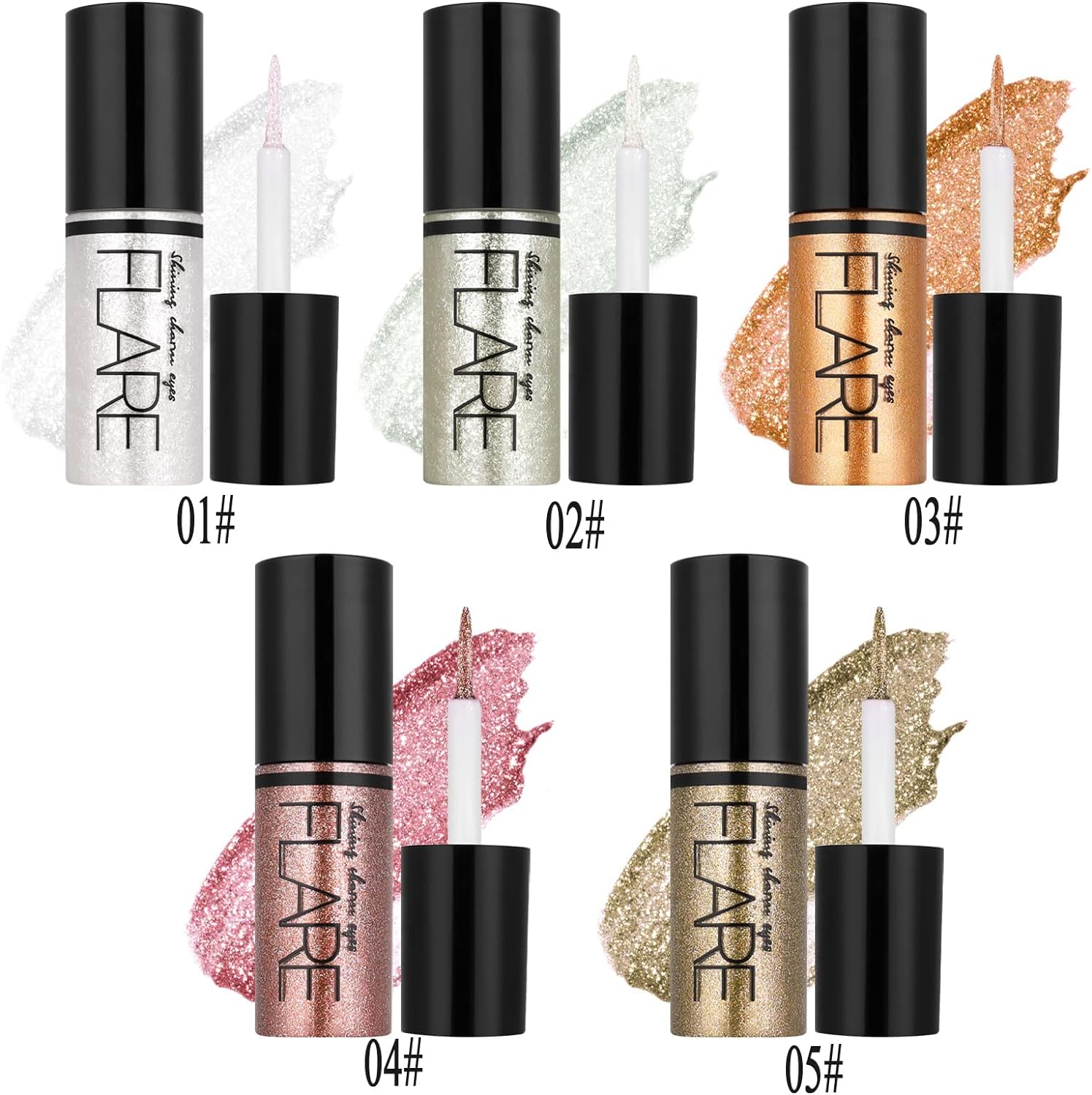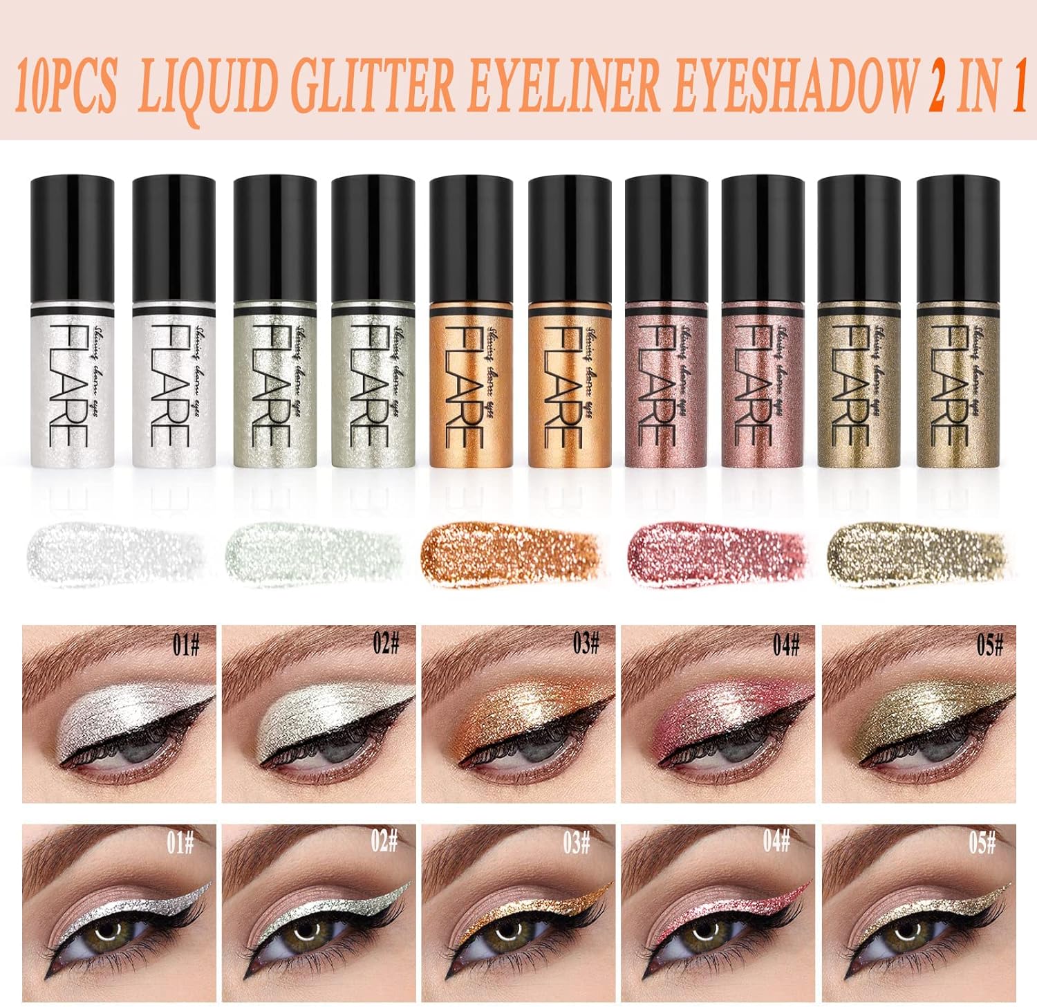 【5 Colors Liquid Glitter Eyeliner Set】2Pcs each of 5 Colors, 10Pcs in total. This product has a variety of colors, choose the color you like.Brilliantly,glitter,sparkle long-wearing liquid eyeliner, highly pigmented, waterproof, strong adhesion