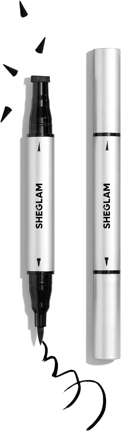 SHEGLAM - WING IT Waterproof Liner Duo - Winged Eyeliner Stamp, Easy Cat Eye Stencil Makeup Tool, SmudgeProof Liquid Eye liner Pen, Vamp Style Wing, Wingliner - BLACK