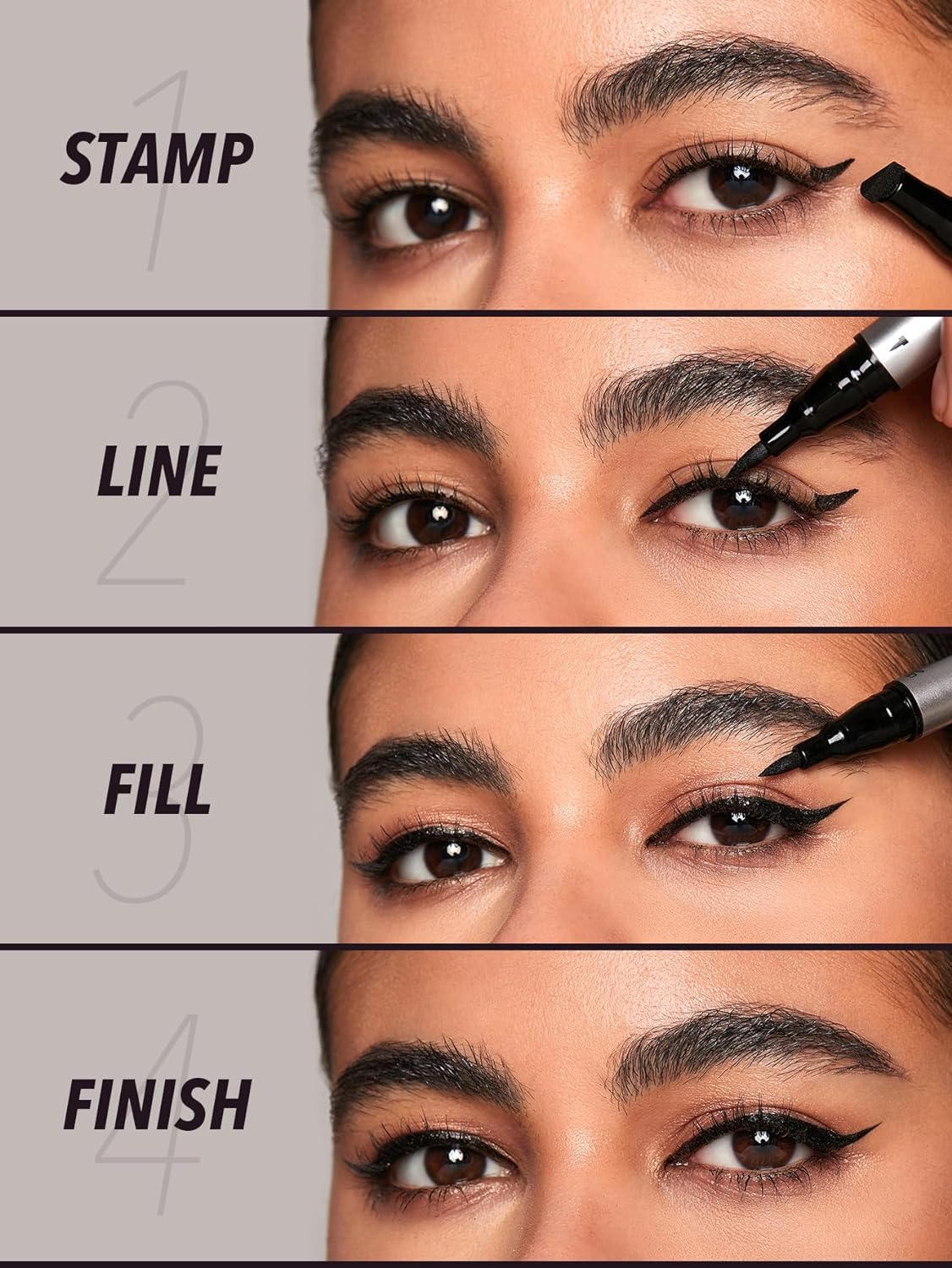 The Perfect Wings Every Time: Applying eyeliner to your wings has never been simpler.To make the same wing on each side, line up the stamp from the corner of your eye to the end of your eyebrow.Each stamp eyeliner has a curve that creates a quick, natural cat eye.