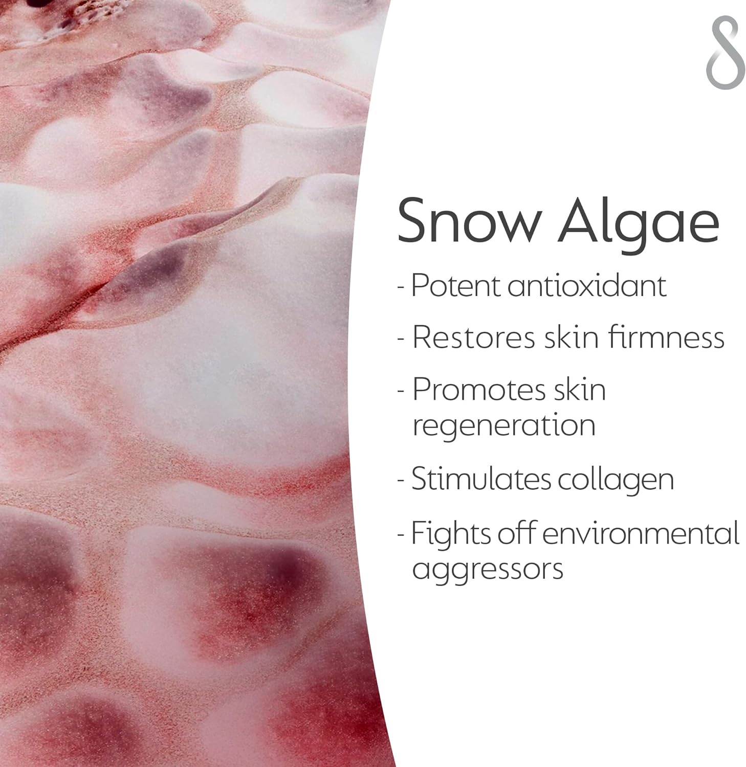 Snow algae extract stimulate collagen production and reduce its loss, improving the papillary structure of skin, increasing skin hydration and eye wrinkle smoothing.