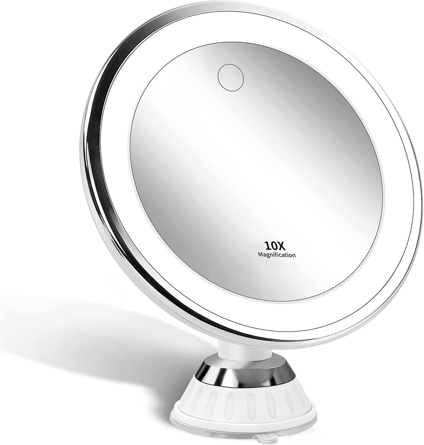 Arabest Makeup Mirror with Lights, Strong Suction Cup Vanity Mirror, 10X Magnifying Lighted Vanity Daylight White LED, Portable Illuminated Bathroom Mirrorfor Home Tabletop Bathroom Shower (Touch)