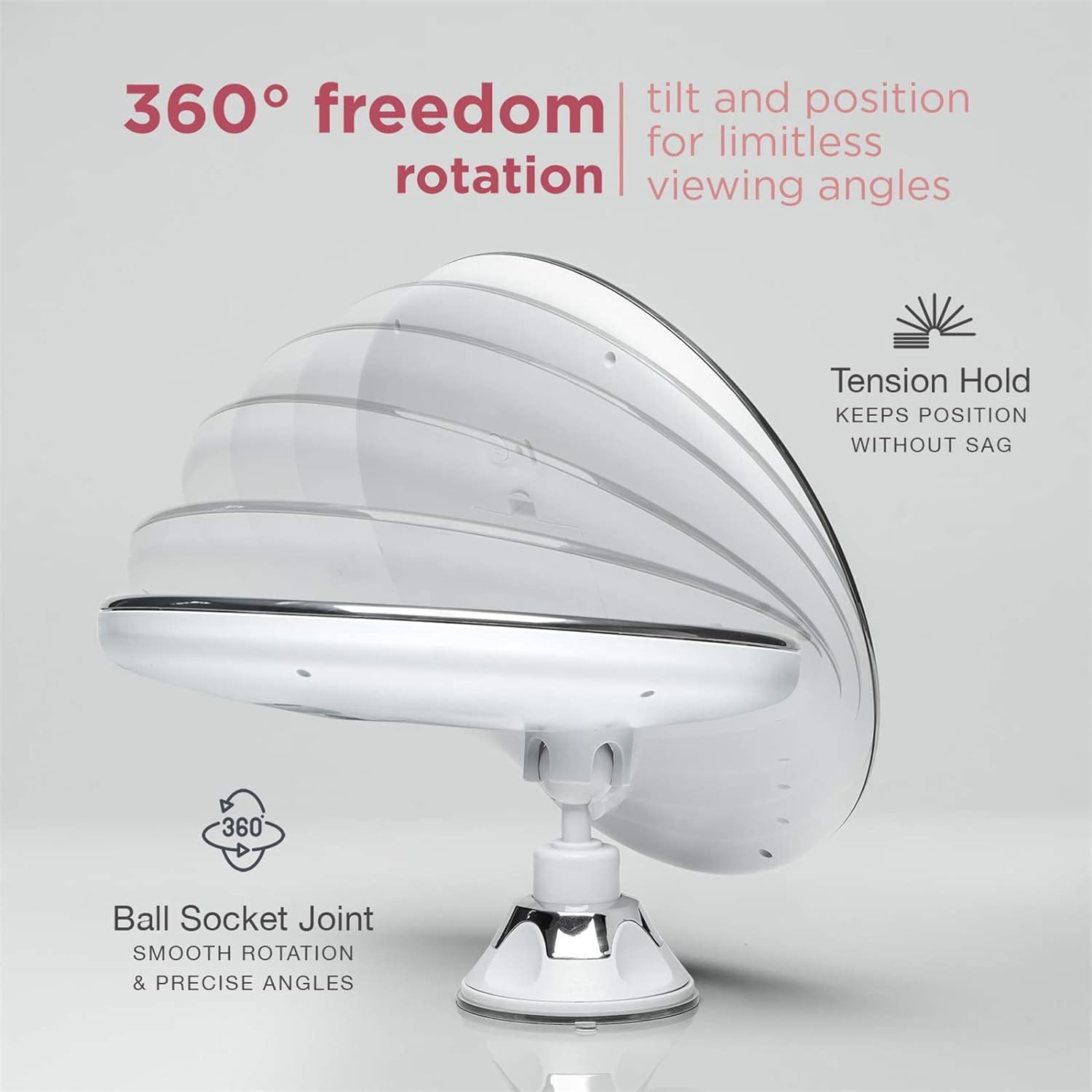 ✅【Protable Ready】Take this cordless mirror with you wherever you go. Bedroom or bathroom, vanity or wall, this mirror suctions easily to any flat & non-porous surfaces like glass, granite or marble; travel mirror perfect for travel too, folding up for compact storage.