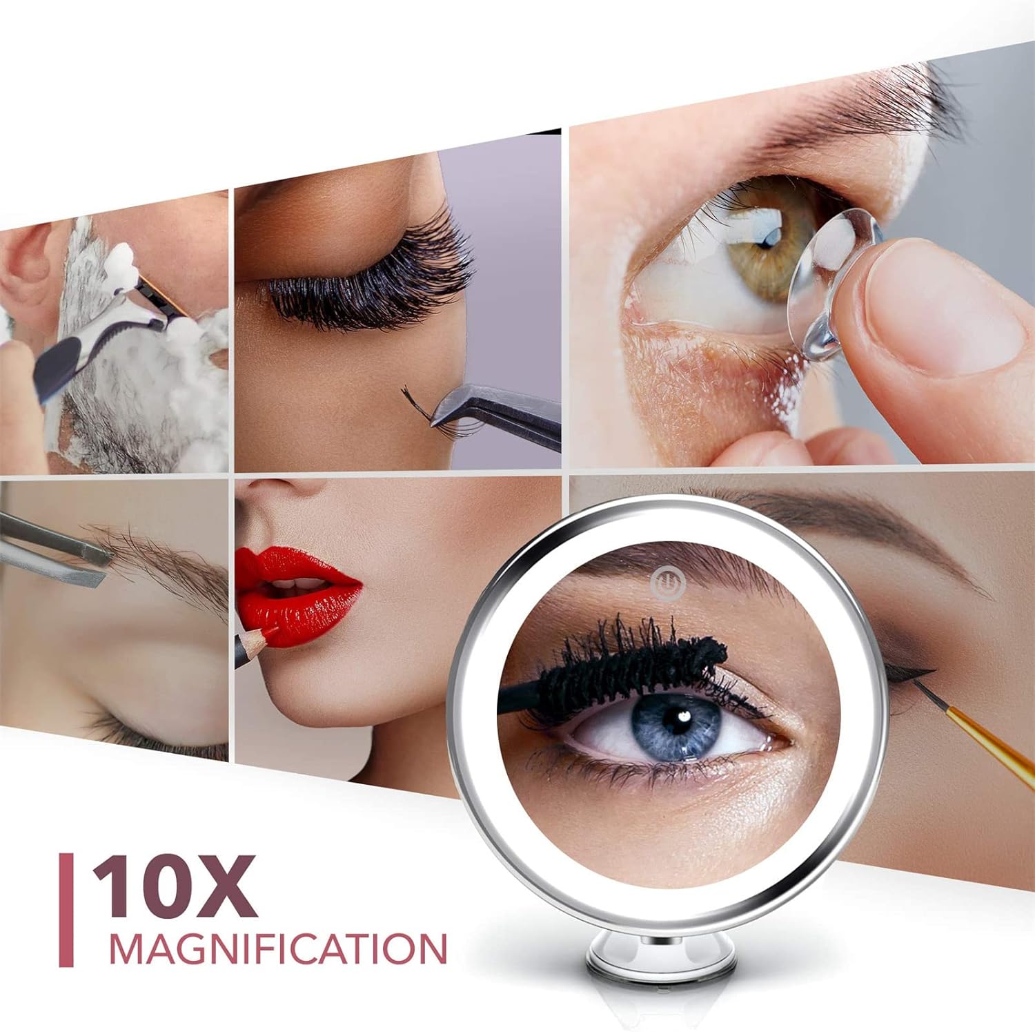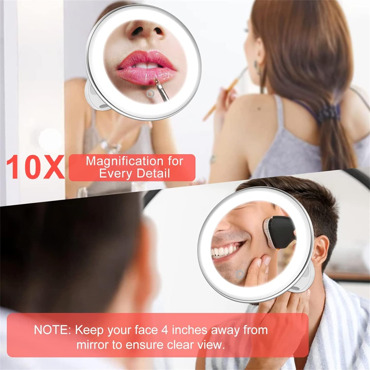 ✅【Brightness Adjustable】Makeup mirror allows you to focus on a specific section of your face to achieve a professional finish. Magnifying mirror ideal for applying makeup and other beauty treatments that require more precision extra precision, such as applying contact lenses and eyebrow tweezing, precise tweezing, shaving, hair styling and facial care.