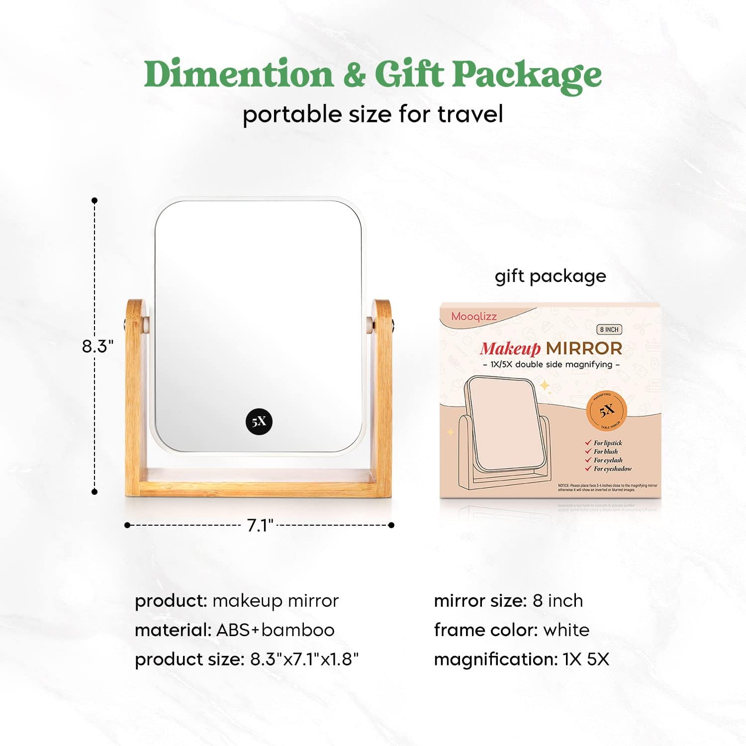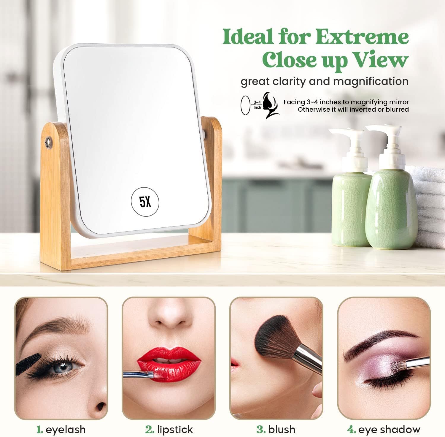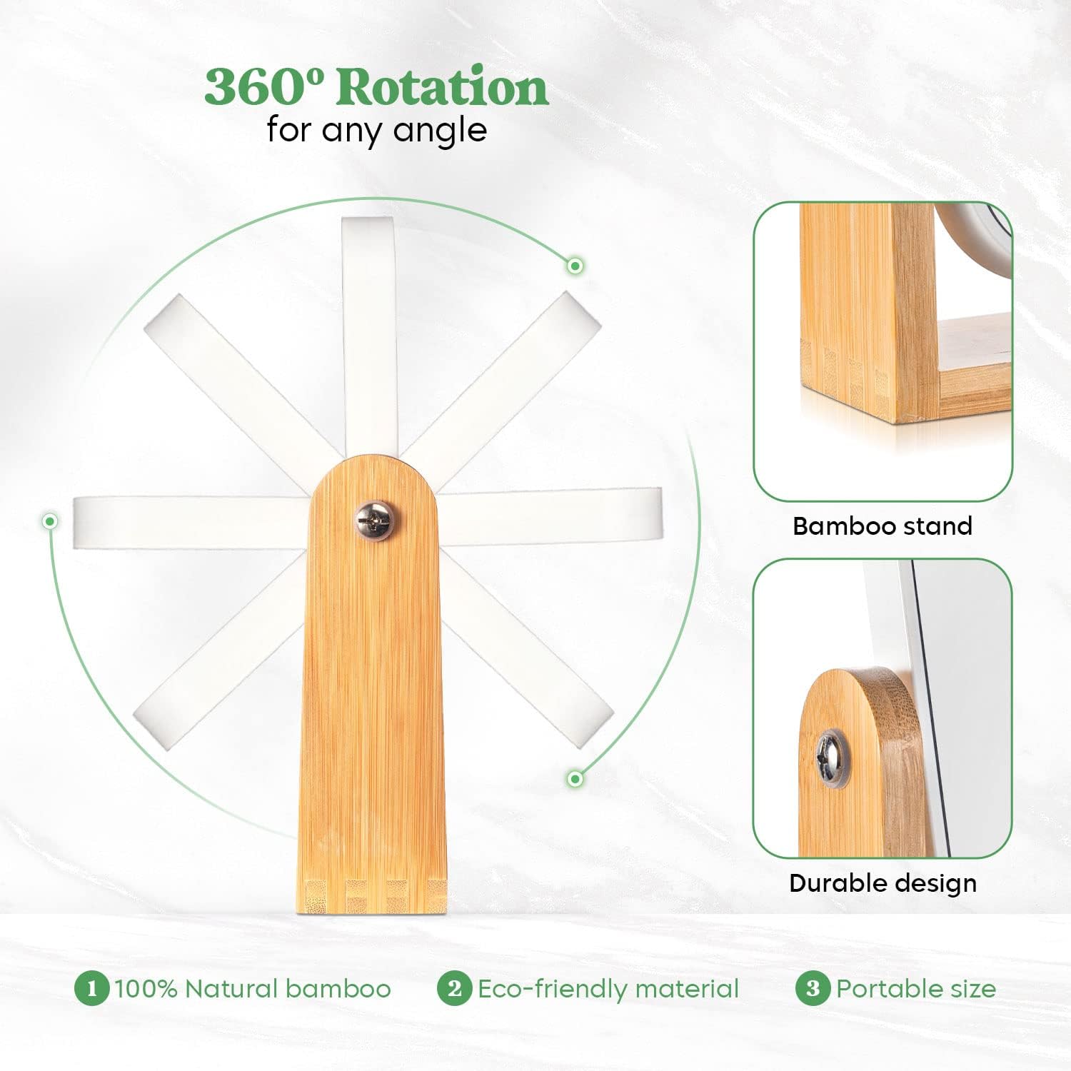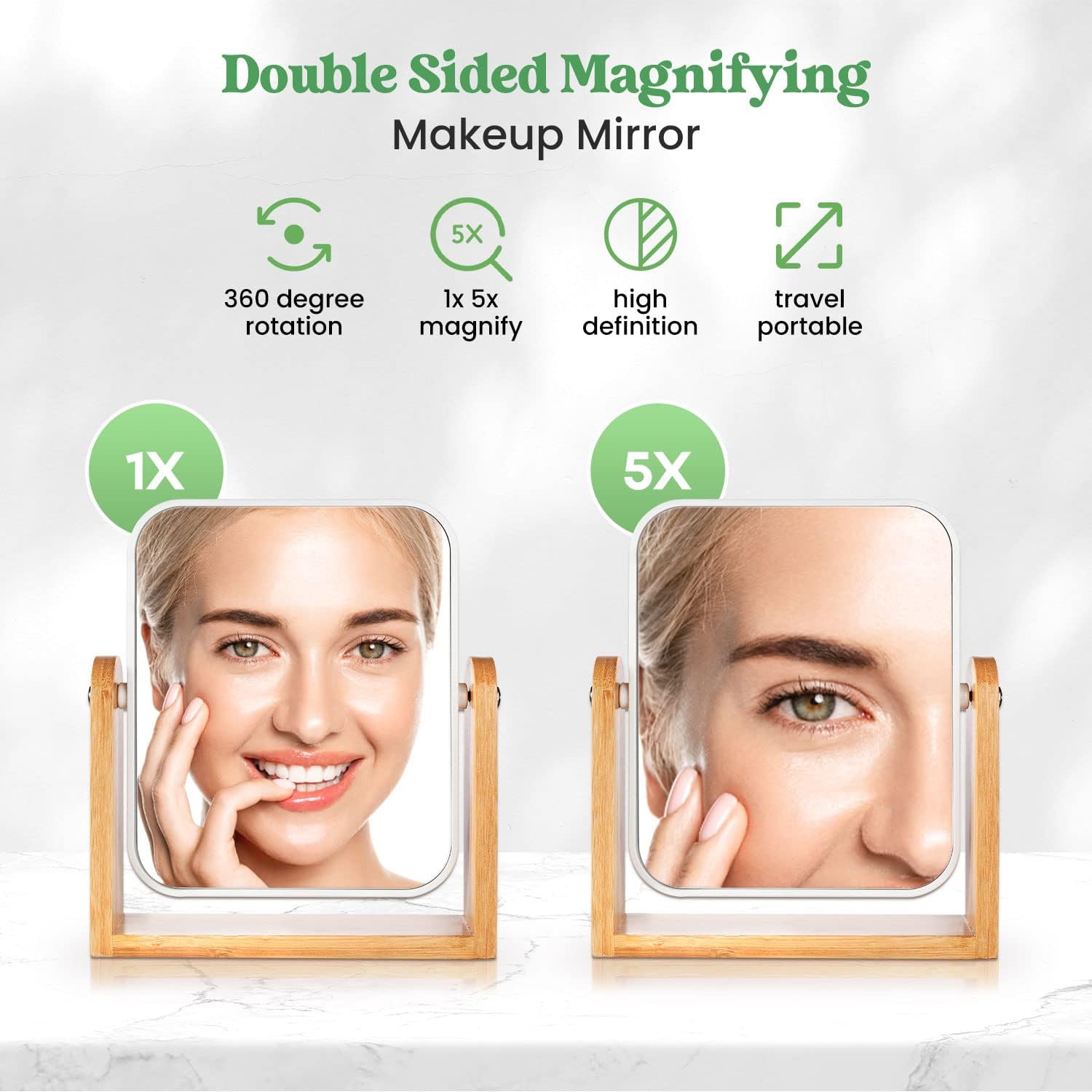 Magnifying Makeup Mirror Bamboo, 1X 5X Double Sided Mirror with Magnification, 360 Degree Rotation Table Mirror