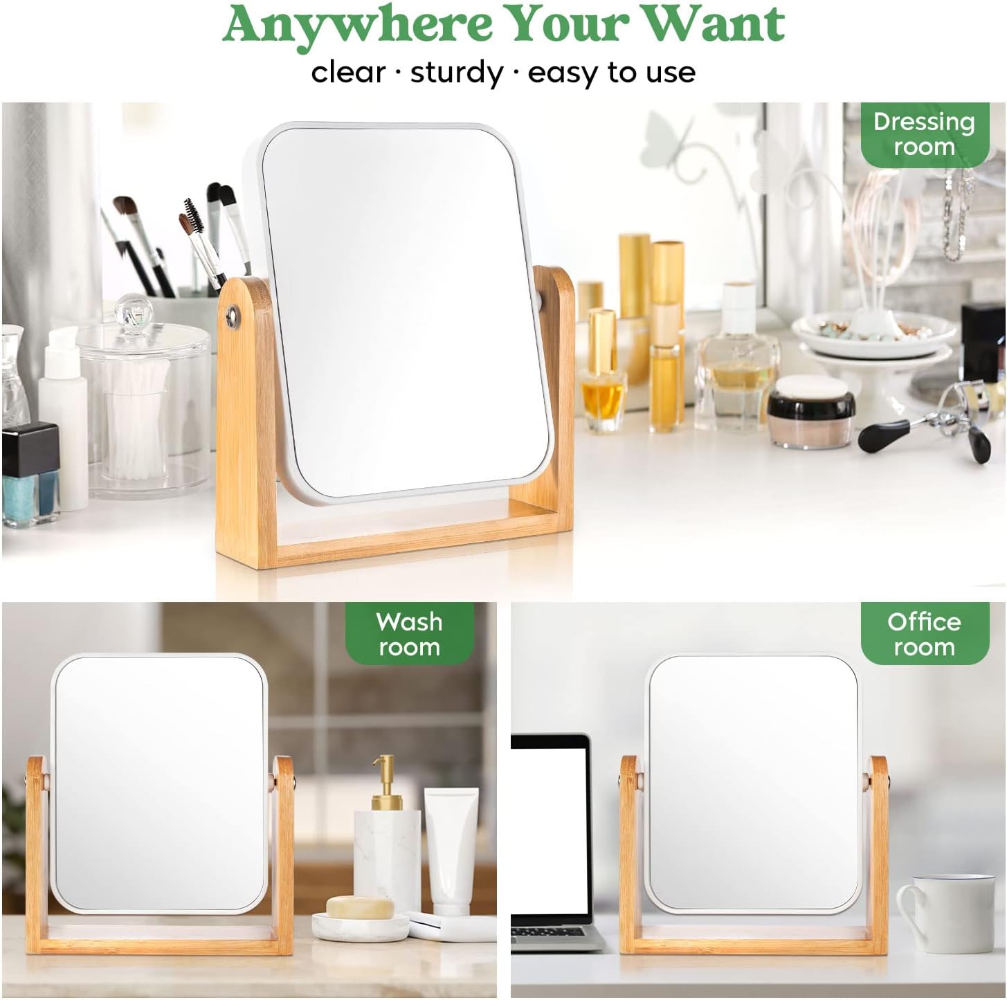 100% Natural Bamboo Mirror: Bamboo is elegant and environmentally friendly, more durable and will not rust, suitable for vanity or desks.