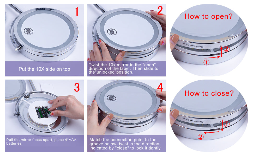 Cordless Use Lighted Mirrors - Power Up By 4*Aaa Batteries (Not Included), You Can Turn On The Led Lights With An Easy On And Off Switch Even At No Electricity Places.