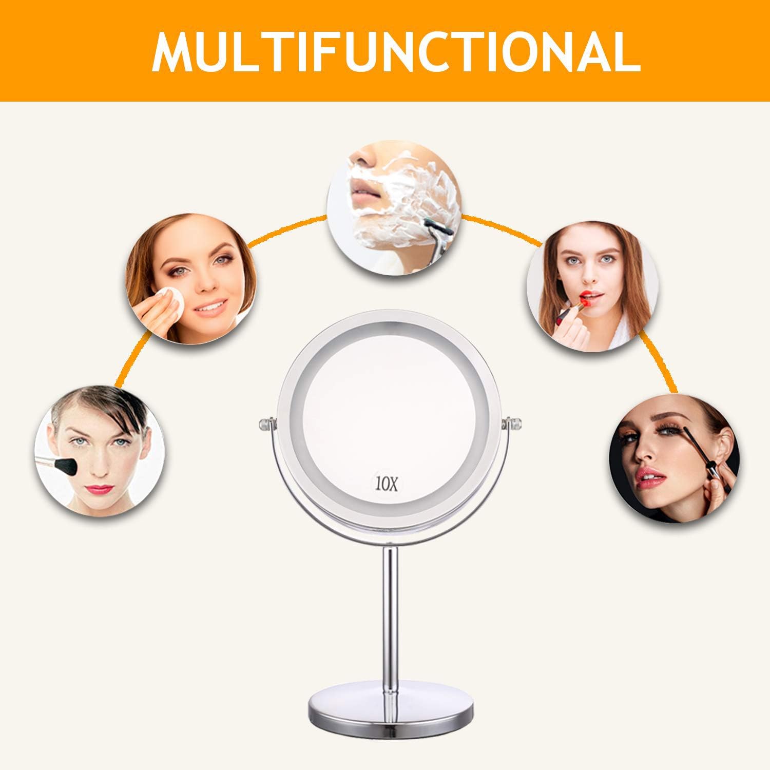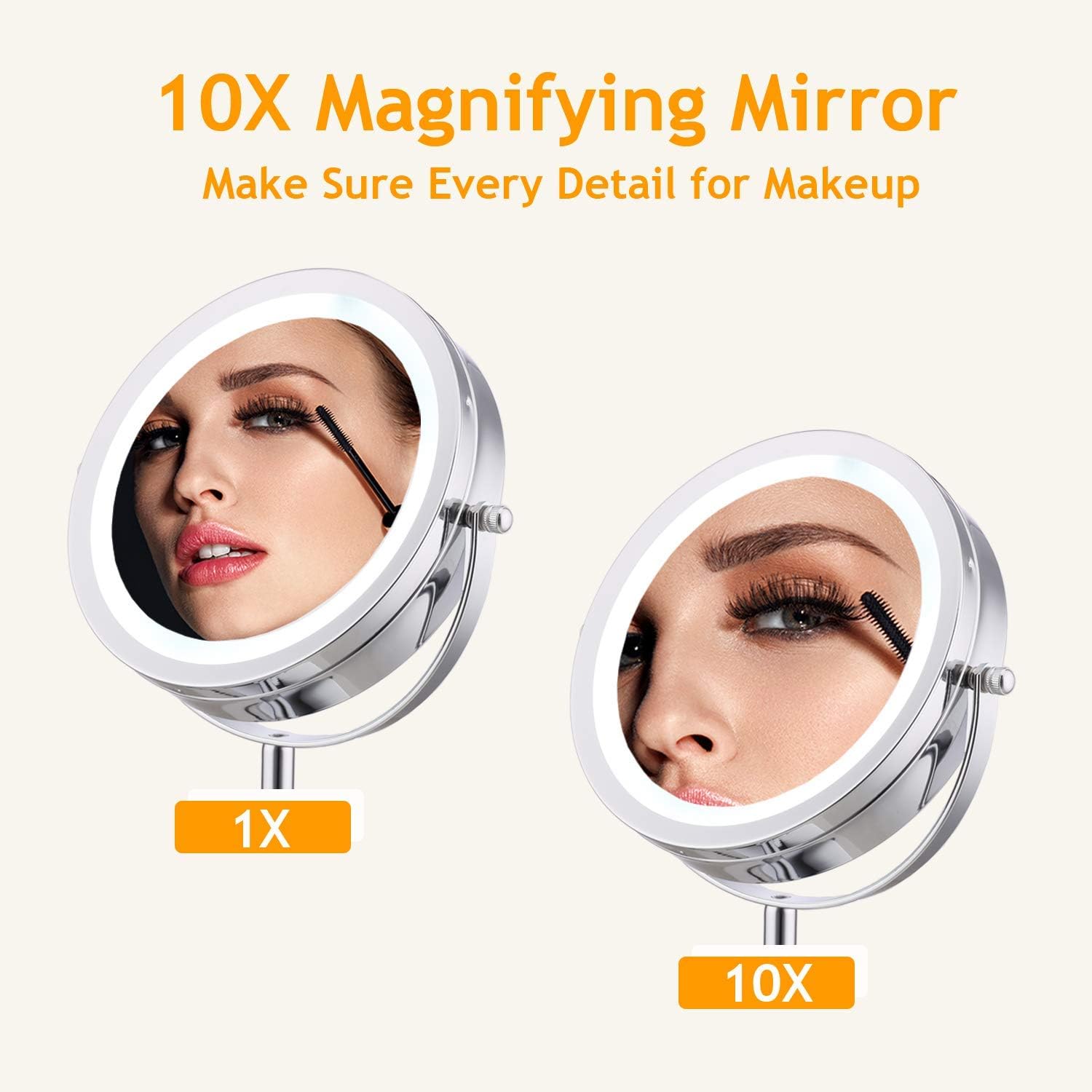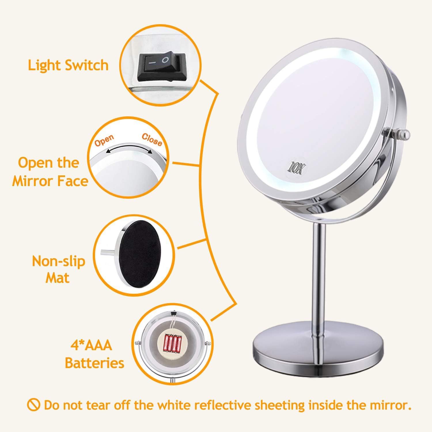 Mumoo Bear Lighted Makeup Mirror - 7" LED Vanity Mirror 10X Magnifying Double Sided Swivel Cosmetic Mirror Chrome Finish, Silver, B07VC98XPT