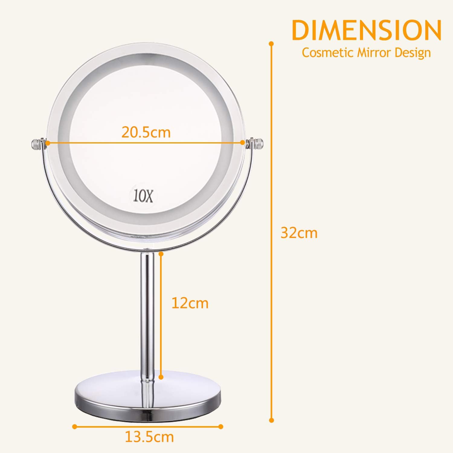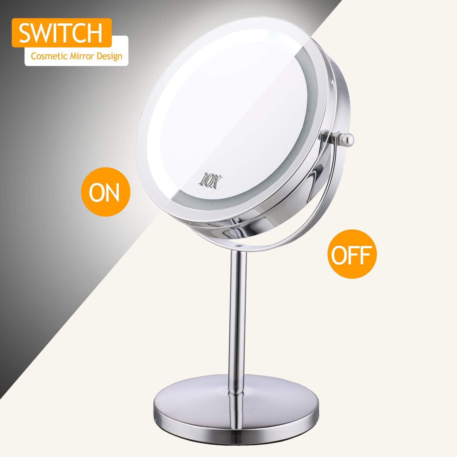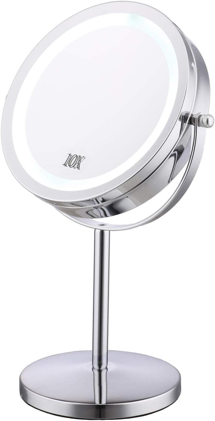Mumoo Bear Lighted Makeup Mirror - 7" LED Vanity Mirror 10X Magnifying Double Sided Swivel Cosmetic Mirror Chrome Finish, Silver, B07VC98XPT