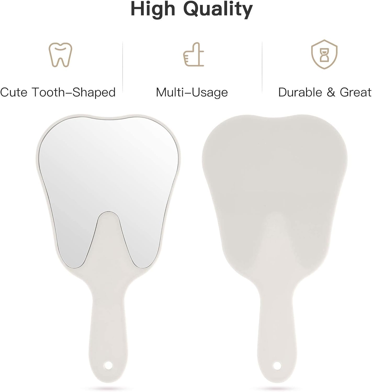 đȘăTooth Shape DesignăCute handle dental mirror unbreakable oral dental mirror with smooth tooth shape design and hole at the top of the handle for easy hanging.
