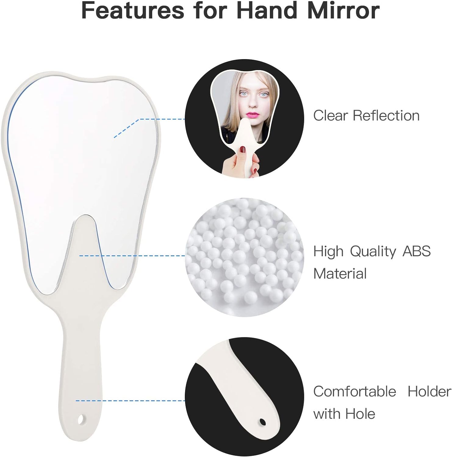 đȘăFeaturesă: high-definition glass hand mirror, flat mirror surface, clear and undistorted images, comfortable grip, tooth-shaped mirror is lovely.