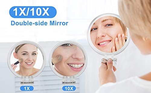 Double Side Magnification: our makeup mirror features with 1X and 10X makeup mirror, the high definition of 10X magnification is perfect for magnifying the details of your face, so that you can put an exquisite makeup well.
