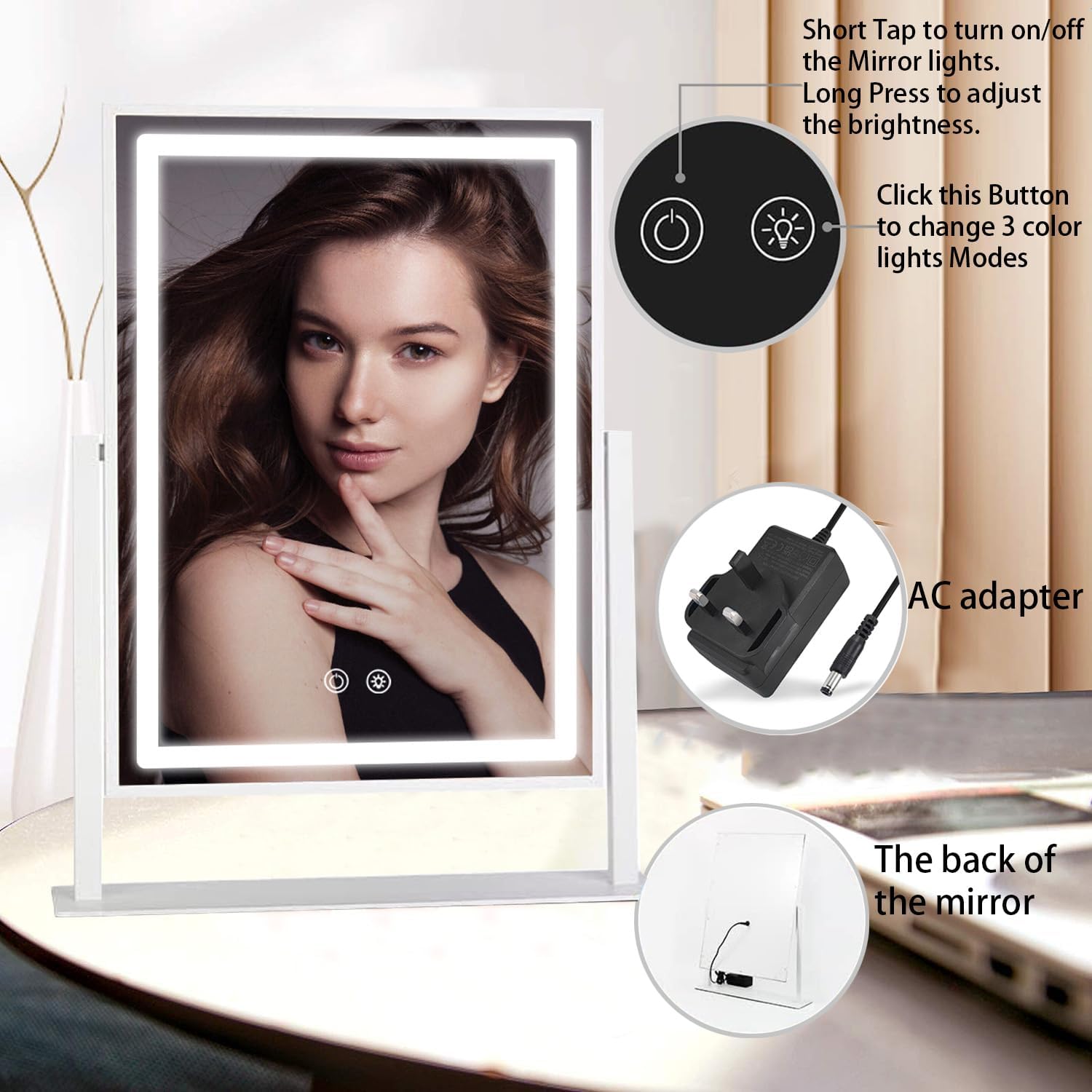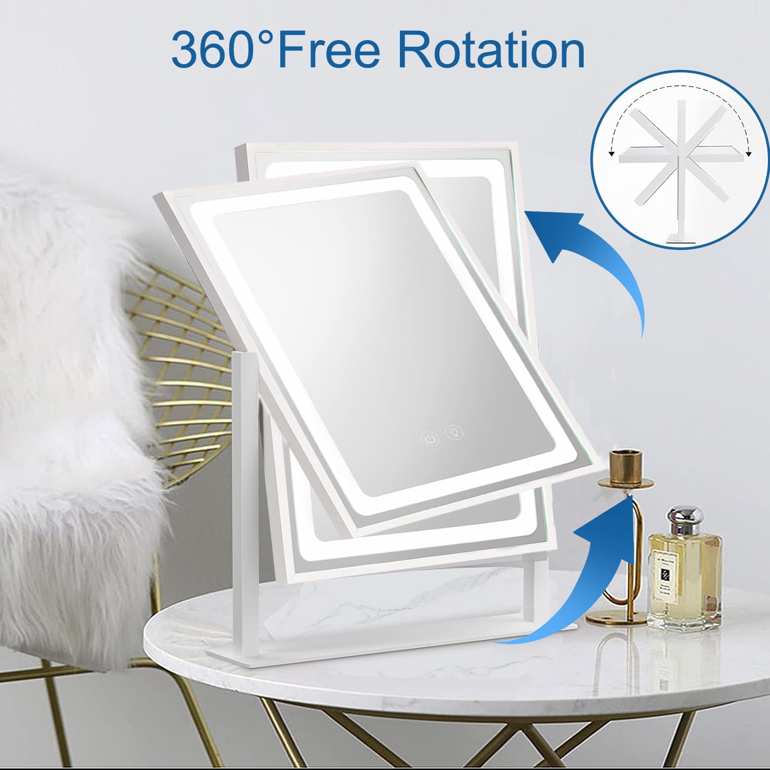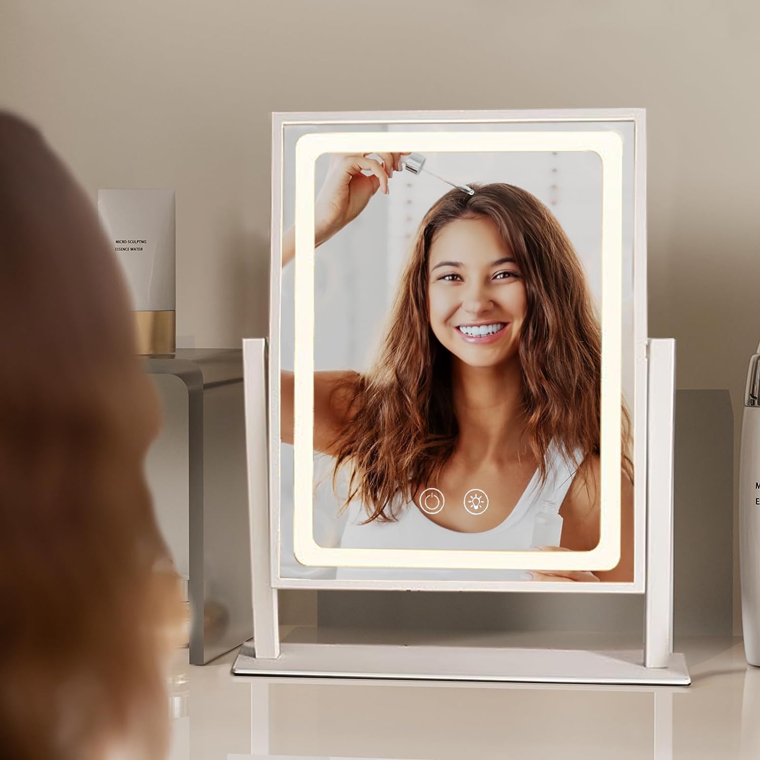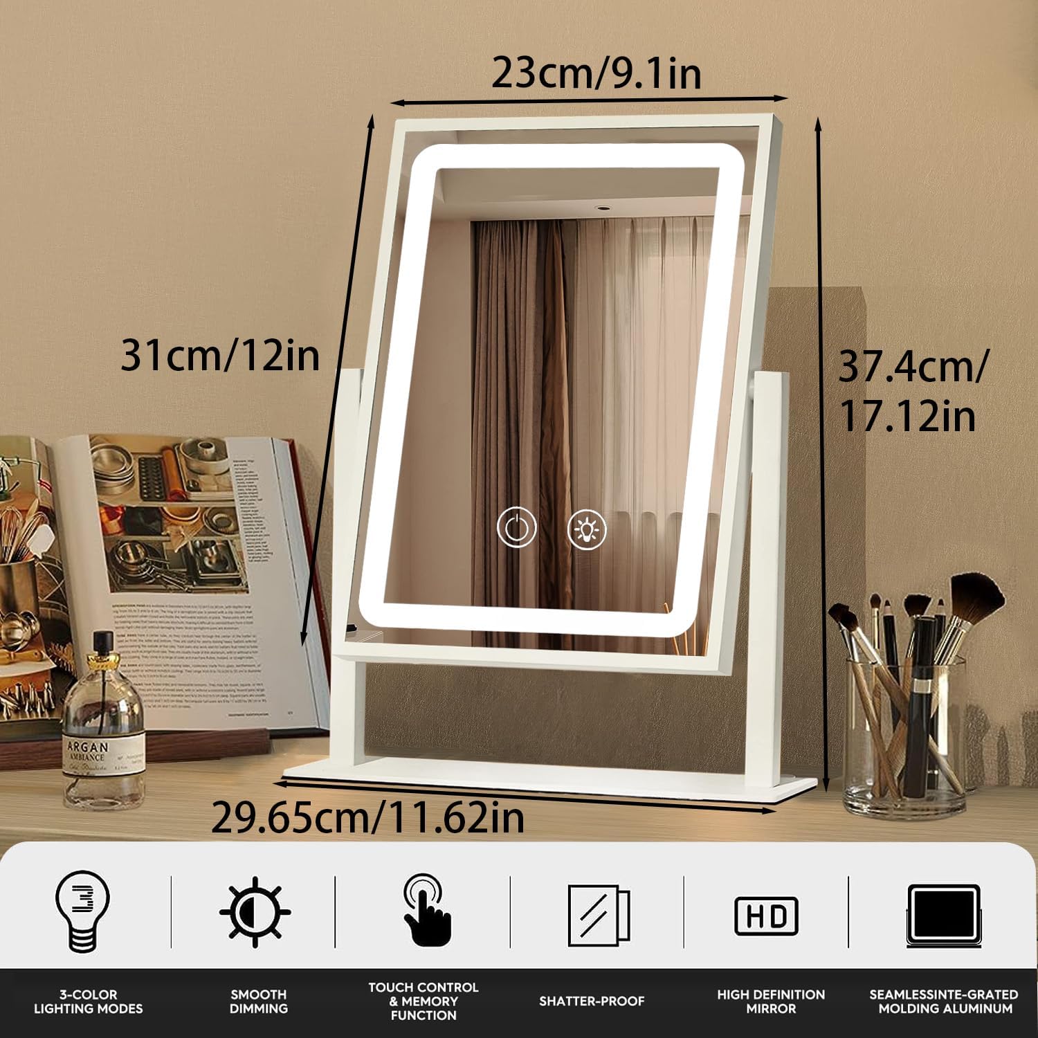 Vanity Mirror with Lights, Lighted Hollywood Vanity Makeup Mirror with Smart Touch Control 3-Gear Dimable Light, 360°Rotation,12 Inches.(White)