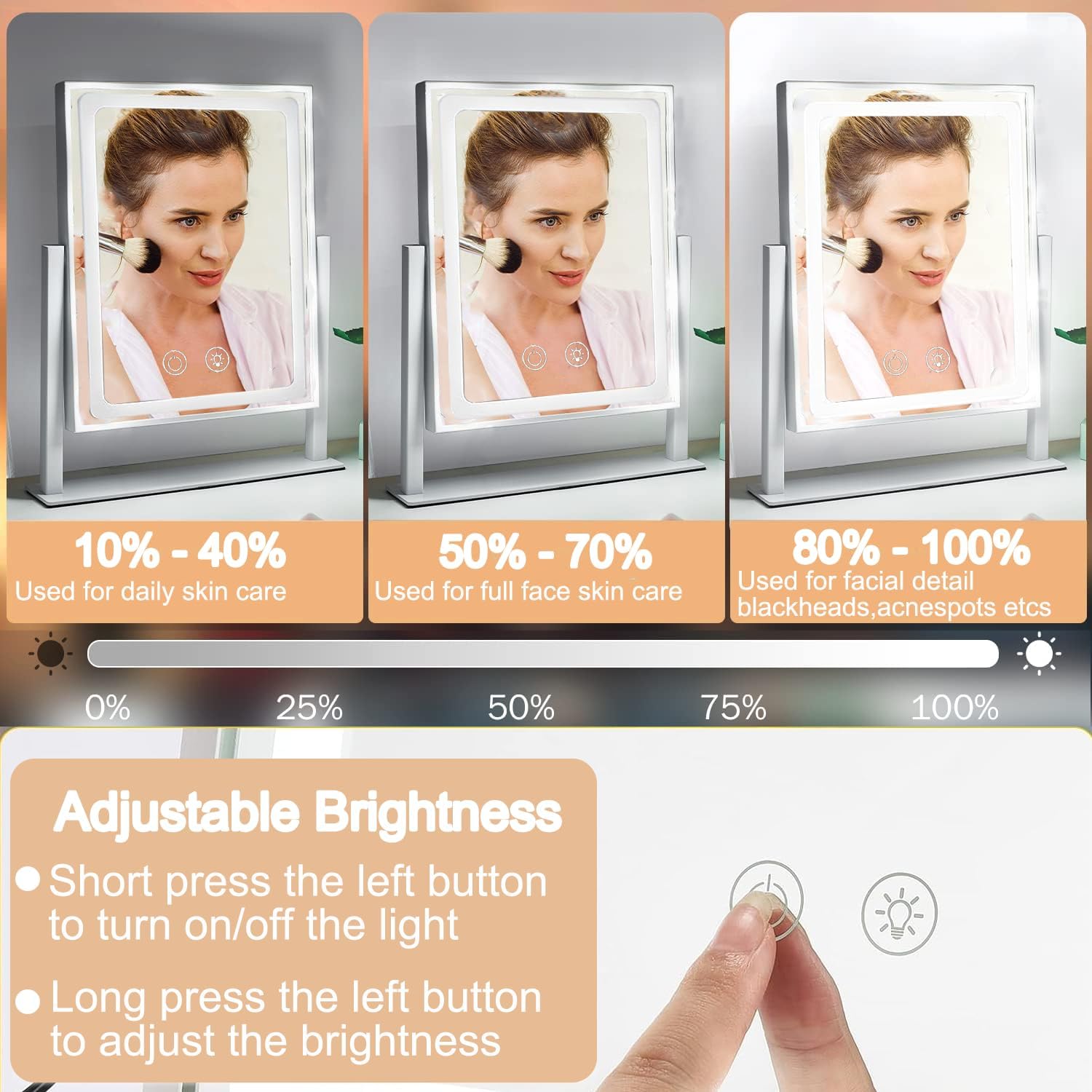 Natural and Bright Lighting: with warm light/daylight settings and adjustable brightness, provide a clean and bright reflection and allow you to get the most natural application of makeup, even at night mirror