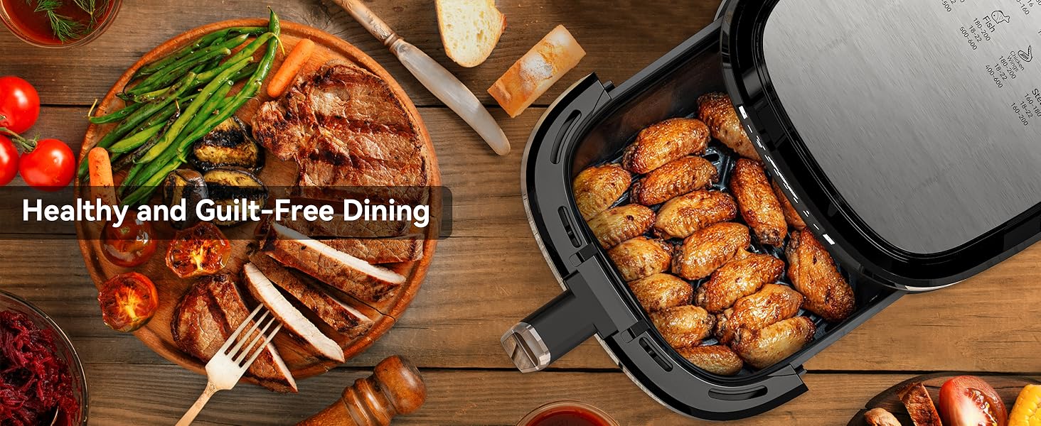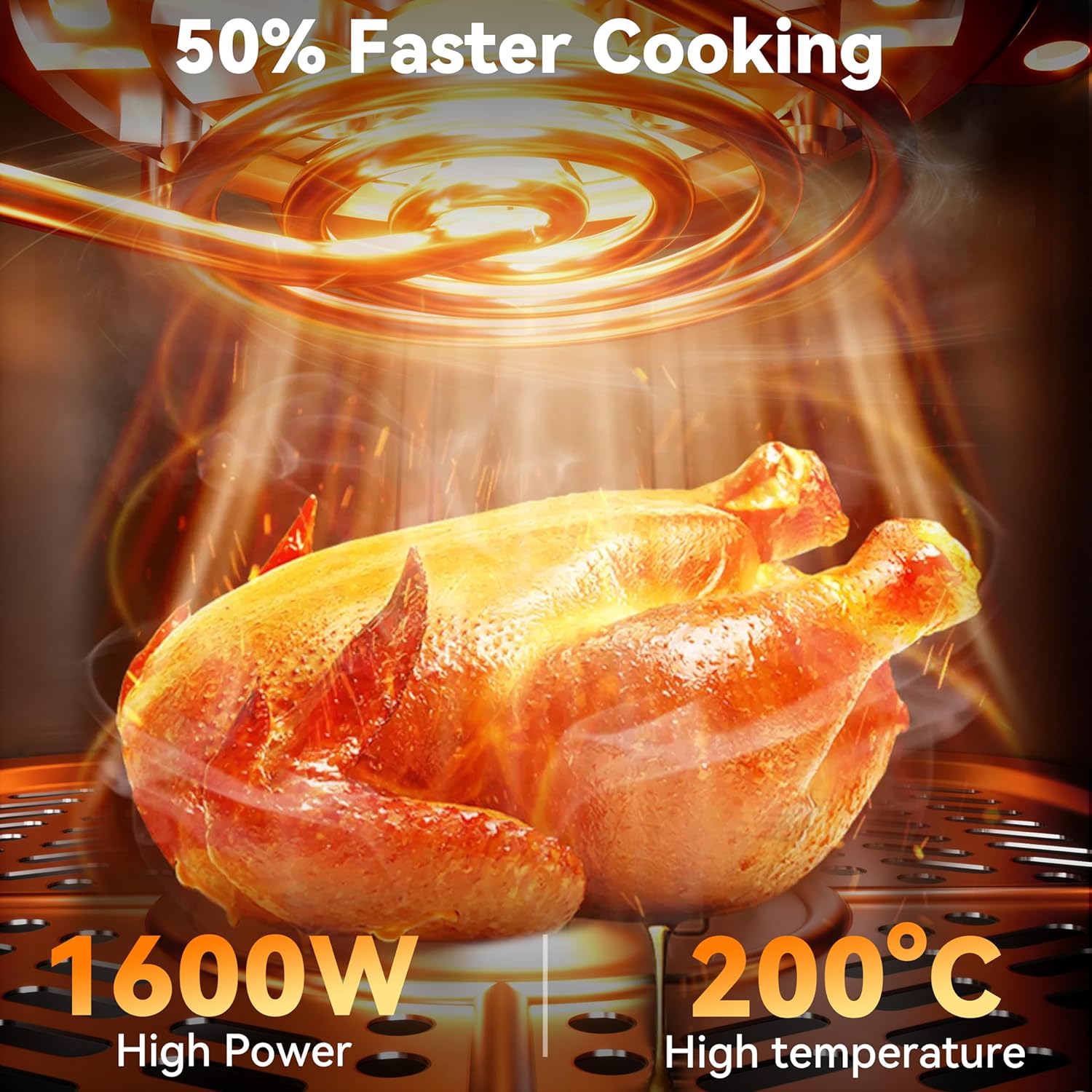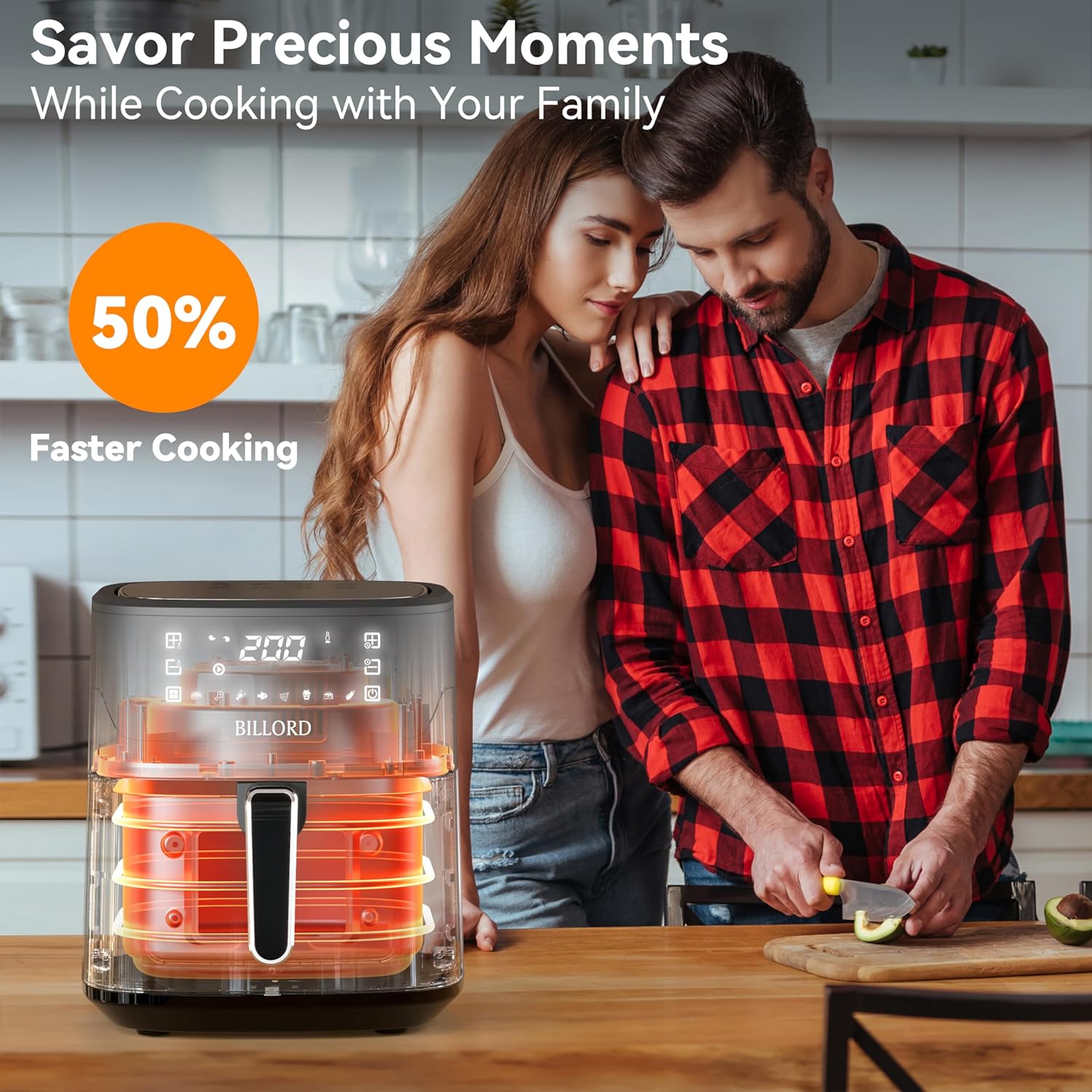 【Generous Capacity & Energy Efficiency】 With a spacious 6.5-liter cooking capacity, the Billord Airfryers for home is perfect for family dinners. Prepare multiple ingredients simultaneously and save both time and energy. Our Air Fryer is energy-efficient, reducing your utility bills while helping you serve delicious meals to your loved ones.