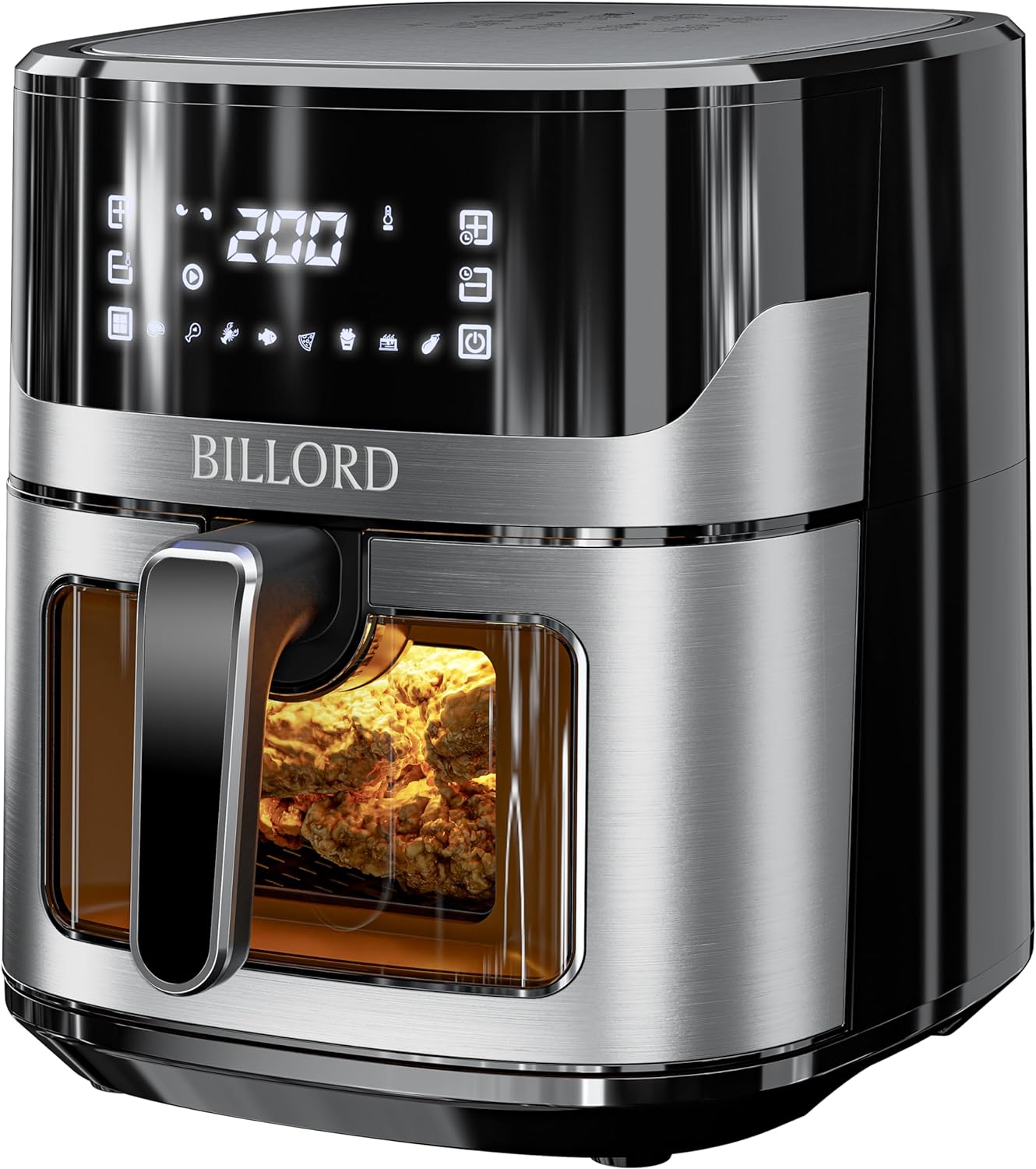 Billord Air Fryer, 6.5L Airfryer Oven Healthy Cooking, Large Air Fryer Stainless with Non-stick Frying Pot, 8in1 Multi-Food Quick & Easy Meal Oiless Cooker with LCD Digital Touch Sceen, Temp 80-200℃