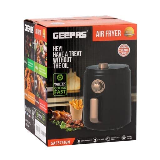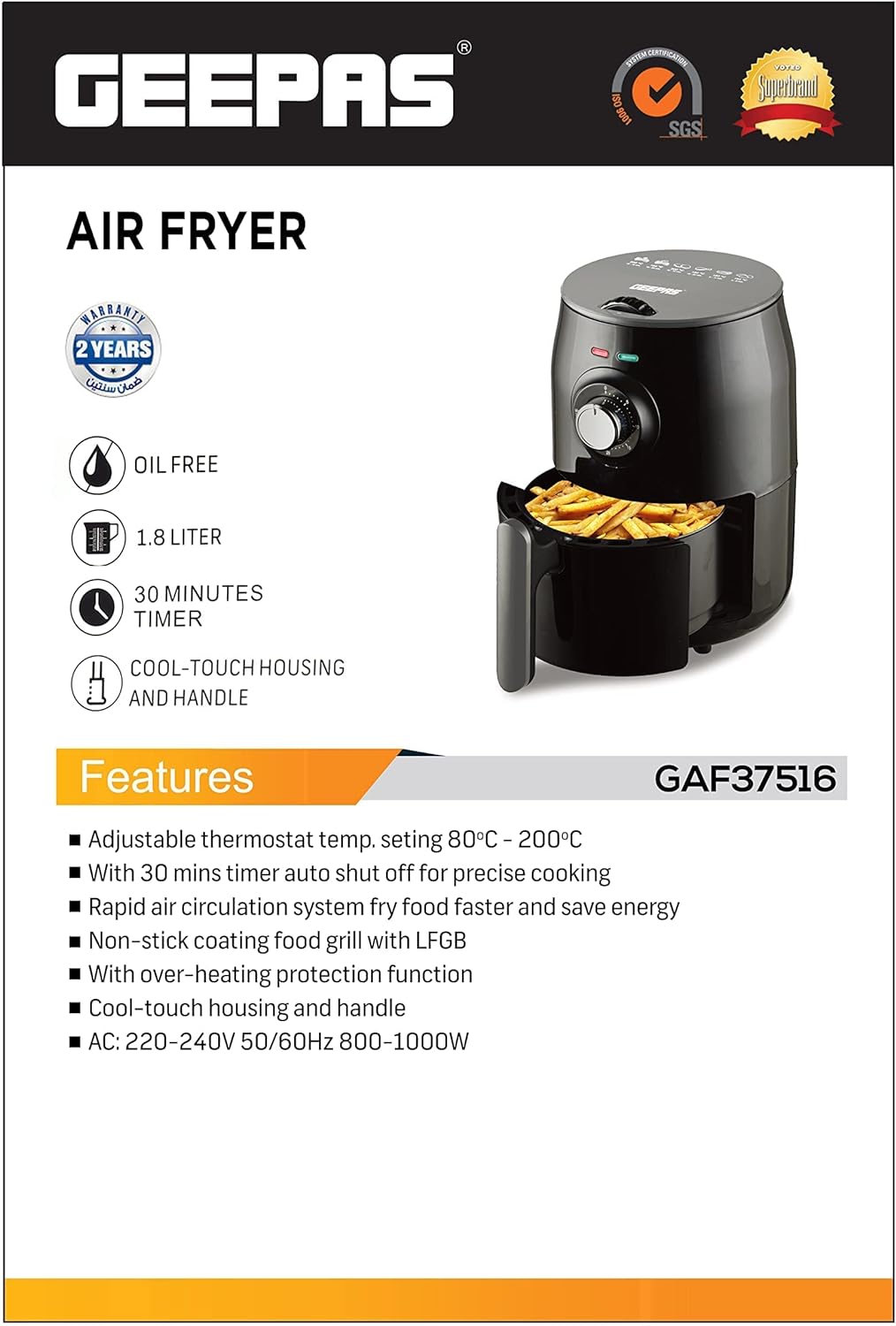 Geepas GAF37516 Air Fryer 1.8L - Cool touch Housing & handle | Overheat Protection, LED ON-OFF Lights, 30 Minutes Timer, Non Stick Detachable Basket, Temperature & Timer Control | 2 Years Warranty