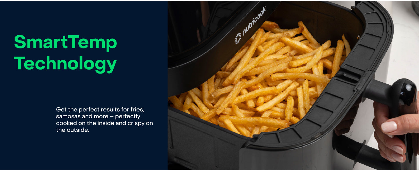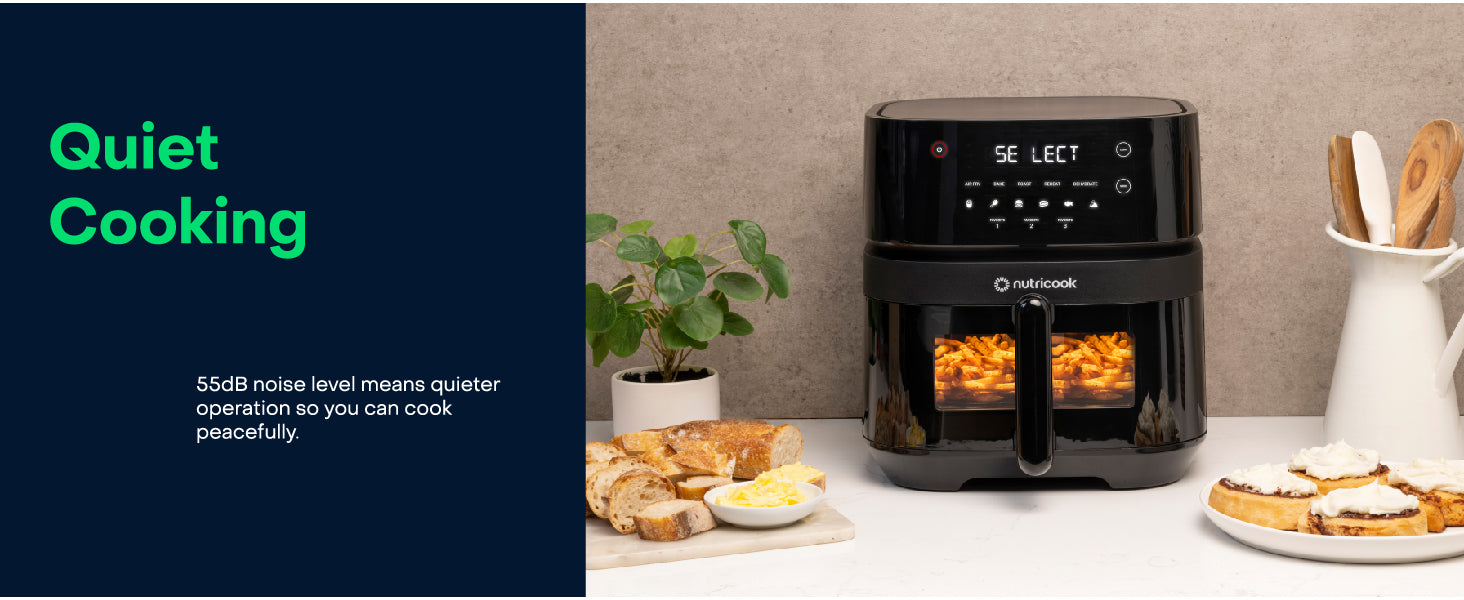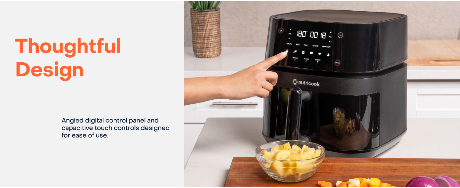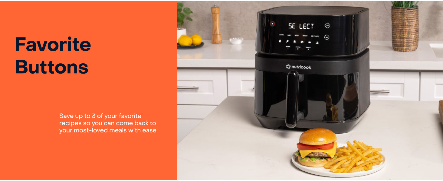 NUTRICOOK AIR FRYER 3 VISION – Our newest air fryer featuring a Clear Window, Internal Light, 11 One- touch cooking programs, Customizable favorite buttons and a sleek design for a next-level air frying experience. Designed in California.