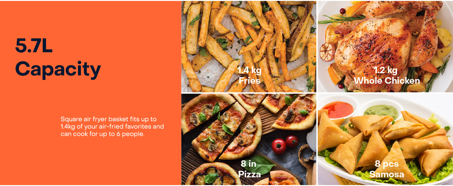 5.7L CAPACITY – Fits up to 1.4kg fries or 1.2kg whole chicken, perfect for the entire family.