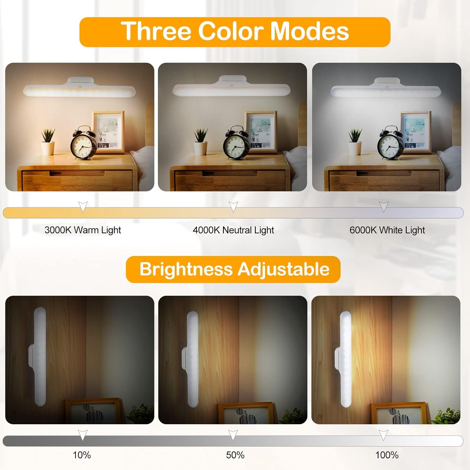 Sky-Touch Under Cabinet Lights,Rechargeable Battery Led Lights Ba,Dimmable Led Light Bar With 3 Color Modes, USb Rechargeable,Wall Shelf, Closet, Mirror, Bedside, Kitchen Lighting
