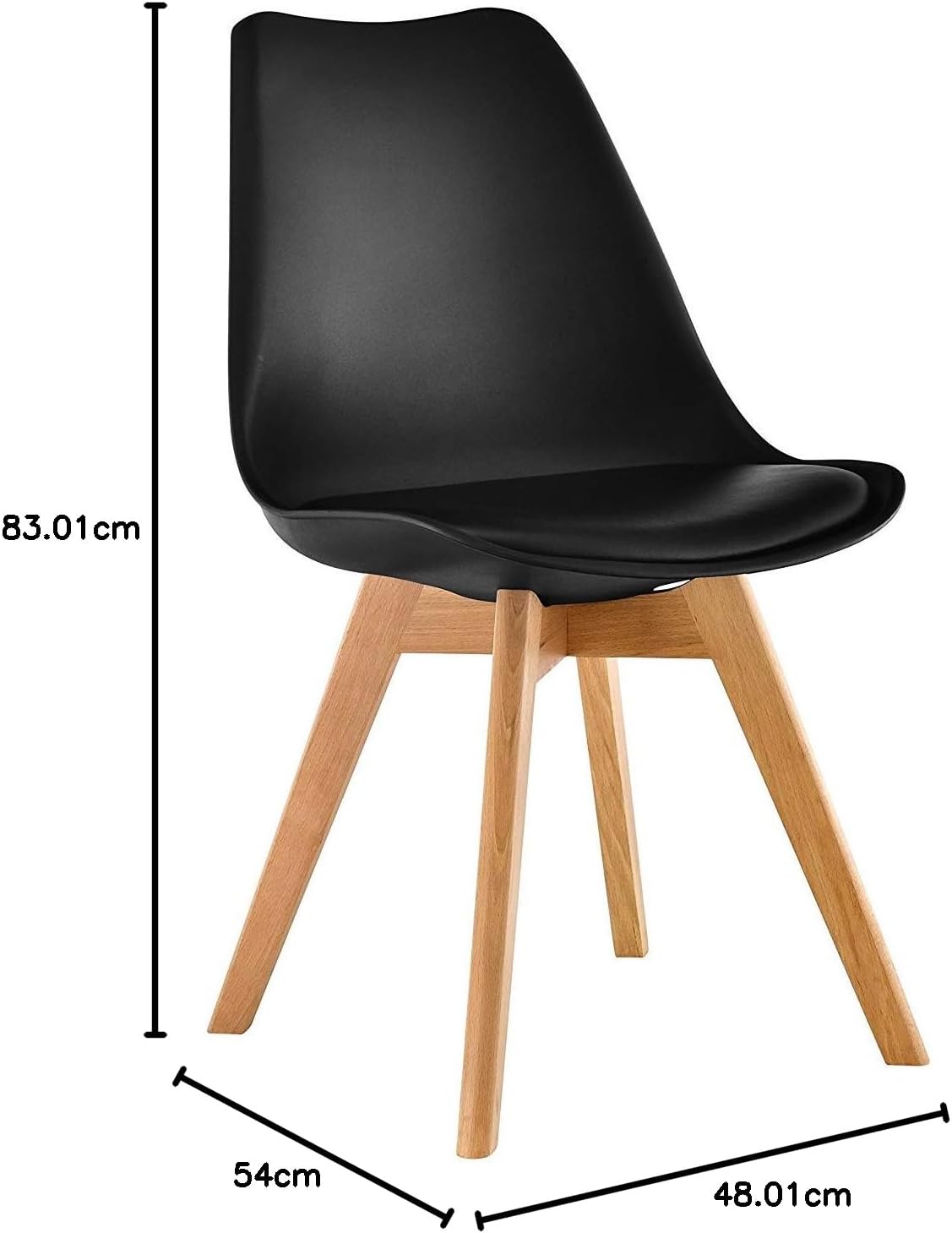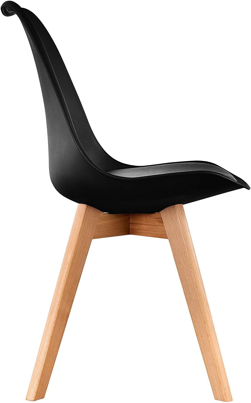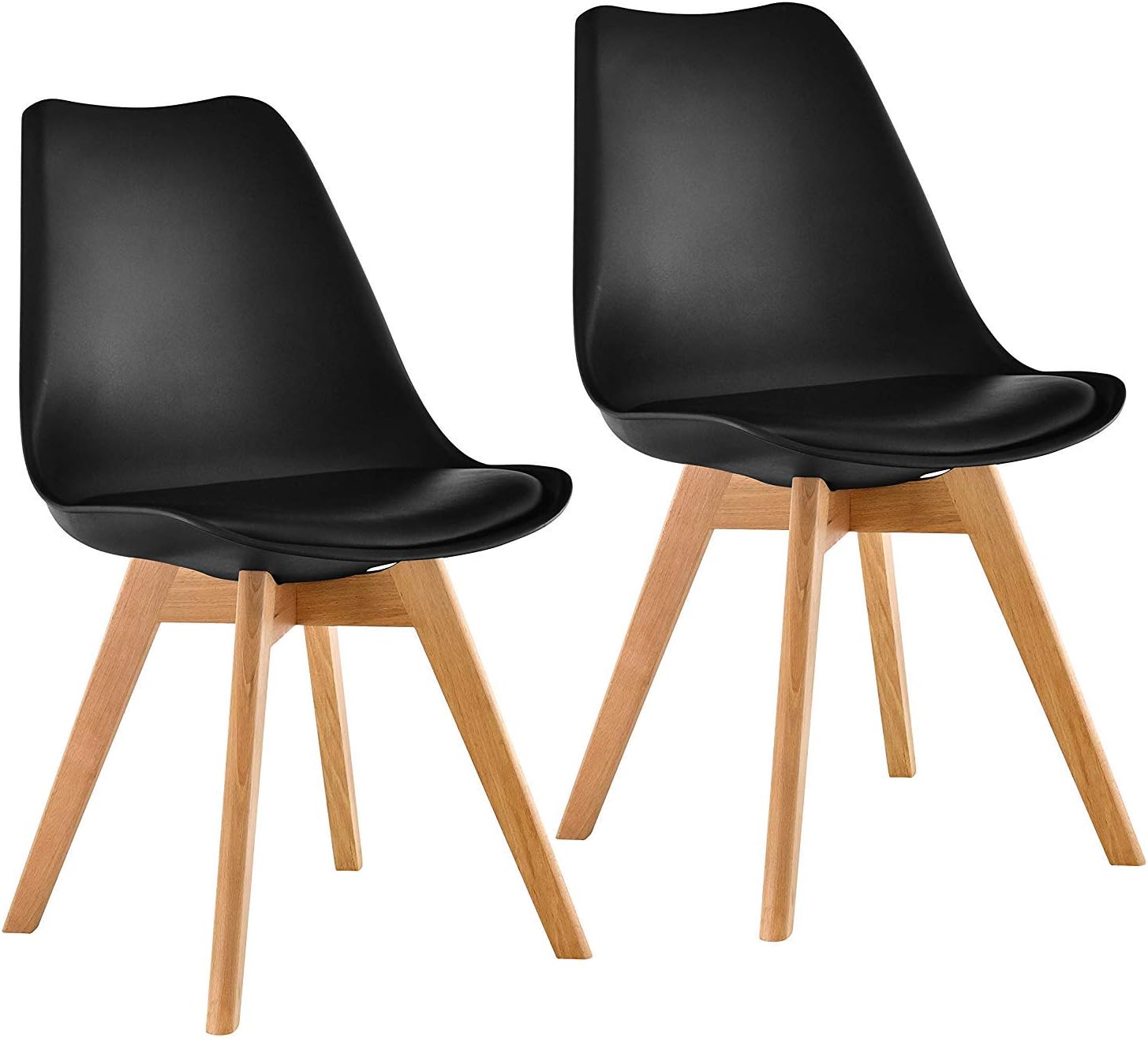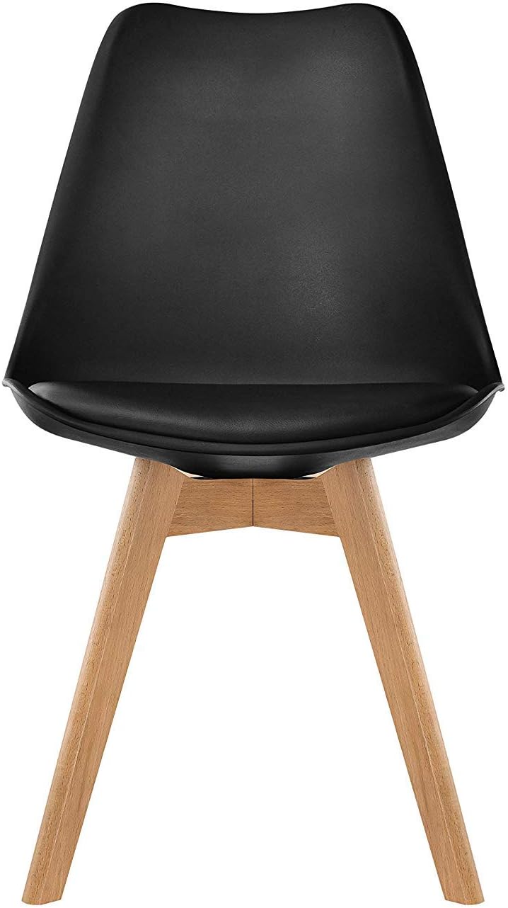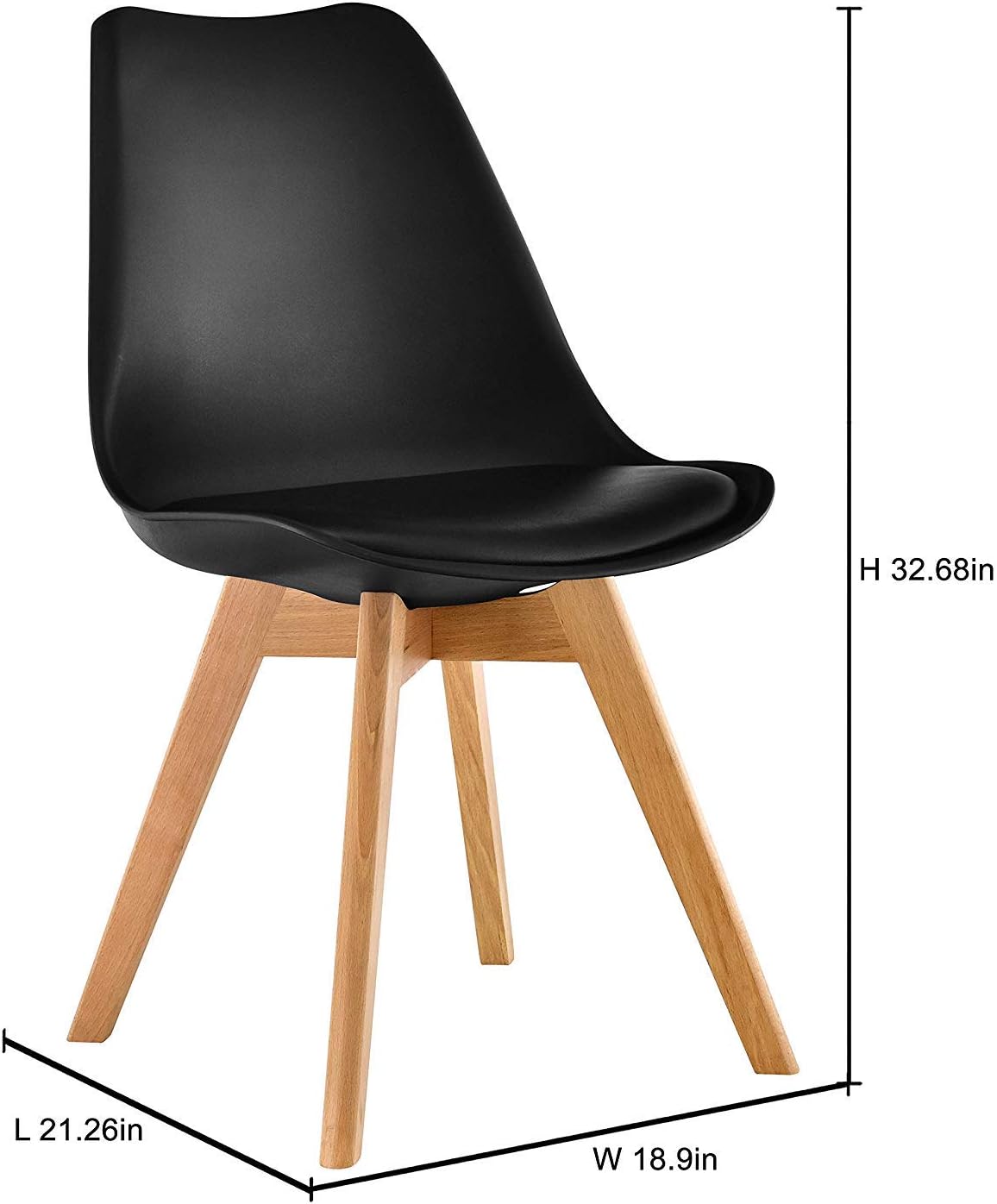 Mahmayi Eames Dining Plastic Chair Beech Wooden Legs with PU Leather Seat-Black (Set of 2), BLF009A BLK, Dining-CH2-BLACK