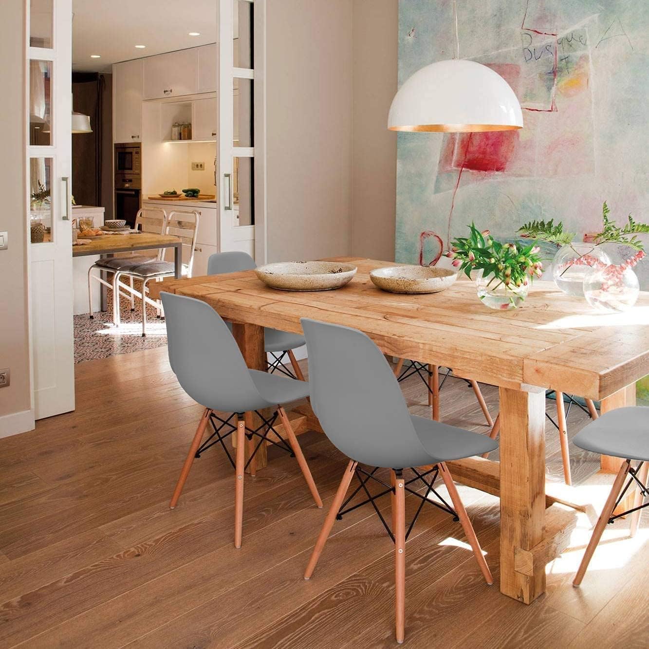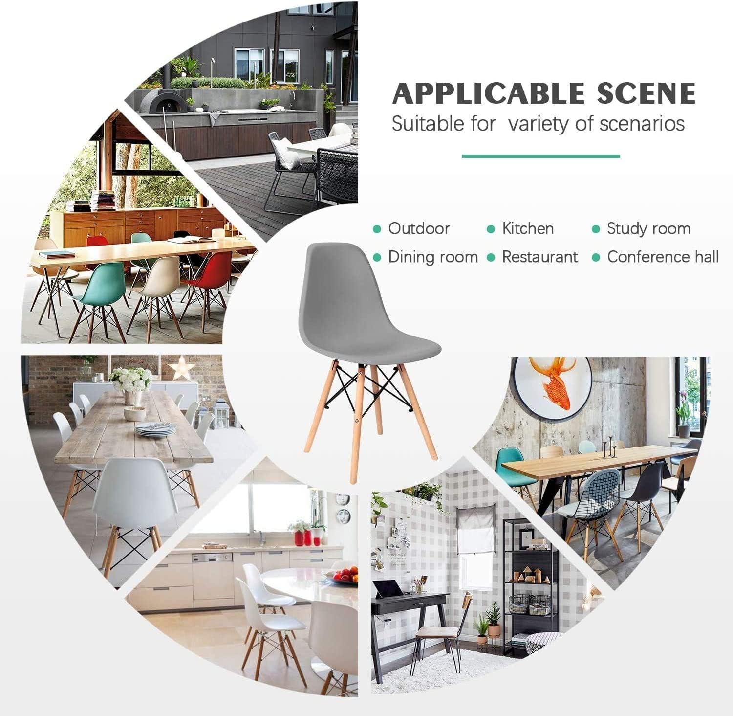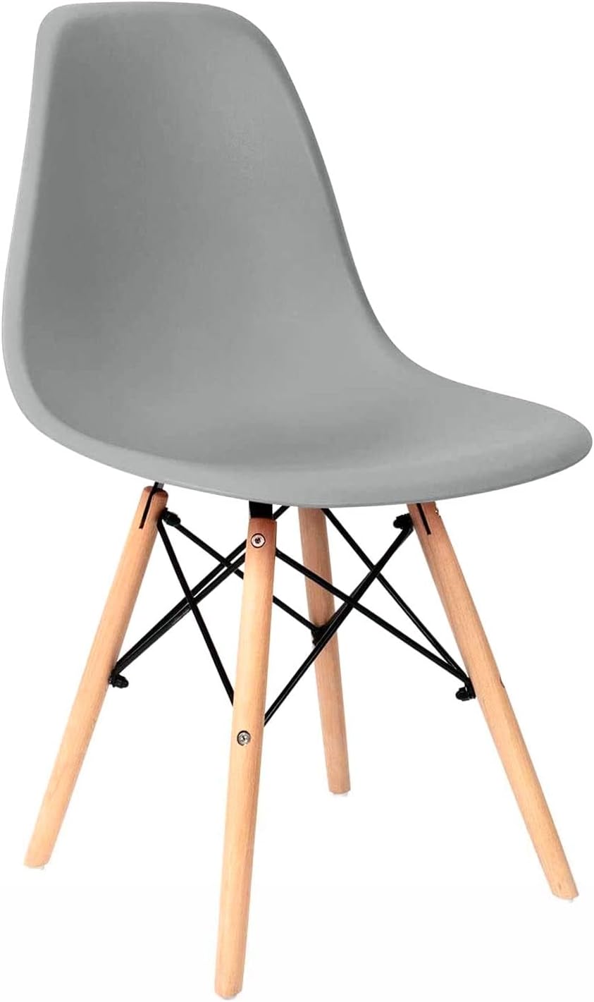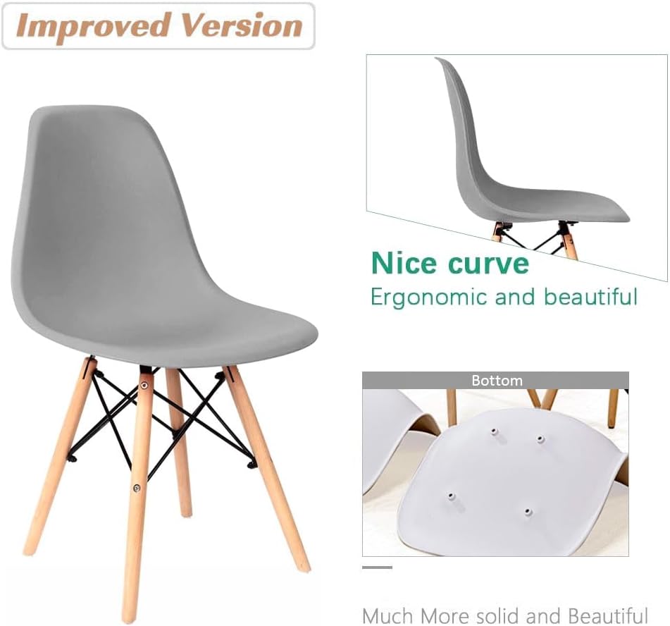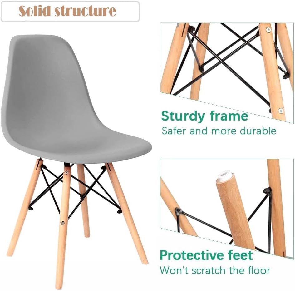 MUMOO BEAR Modern Dining Chair Dining Side Chairs, Simple Office Chair, Lounge Shell Chair, Eames Style Chair, with Wood Legs and Plastic Seat, for Kitchen, Dining, Bedroom, Living Room (Grey)