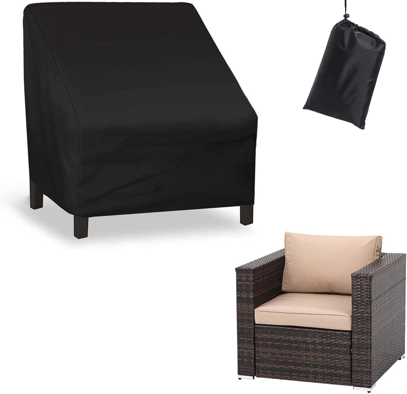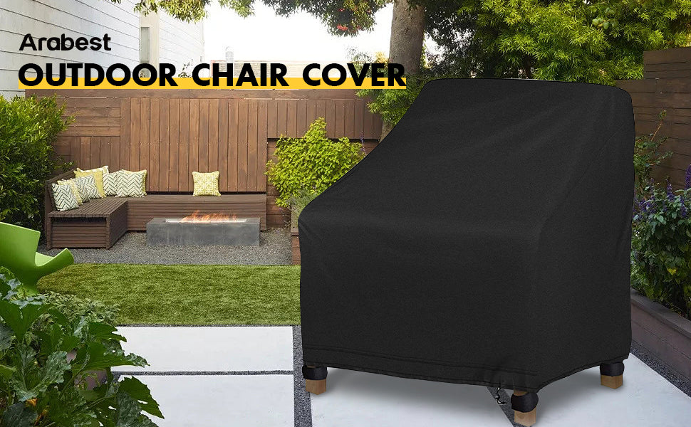 Arabest Outdoor Chair Cover, 420D Heavy Duty Oxford Waterproof Patio Furniture Covers, Outdoor Chair Covers UV All Weather Protection, Patio Chair Cover for Backyard Garden Balcony (Black, 97x79x74cm)