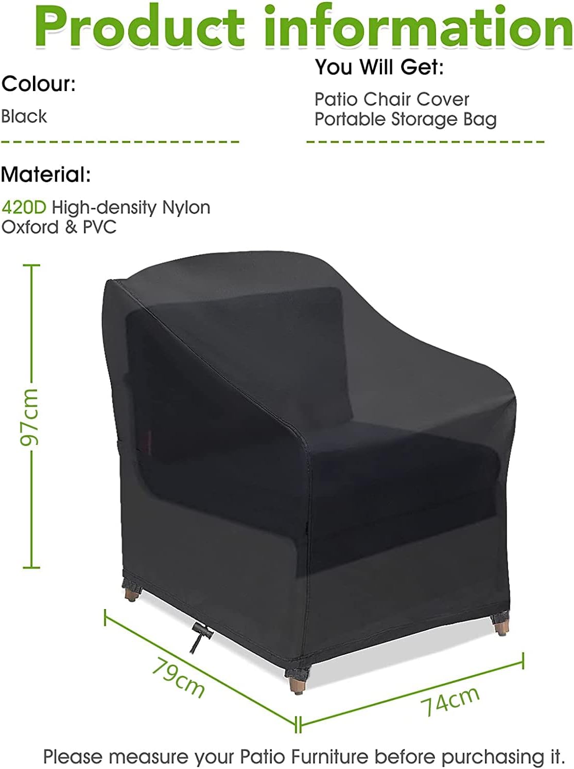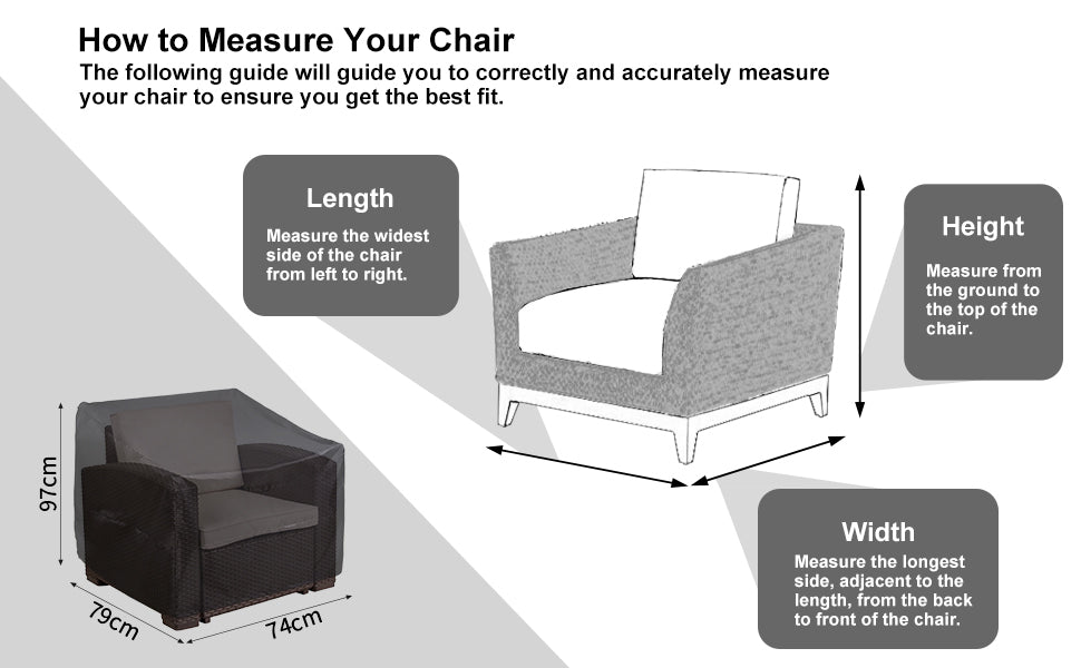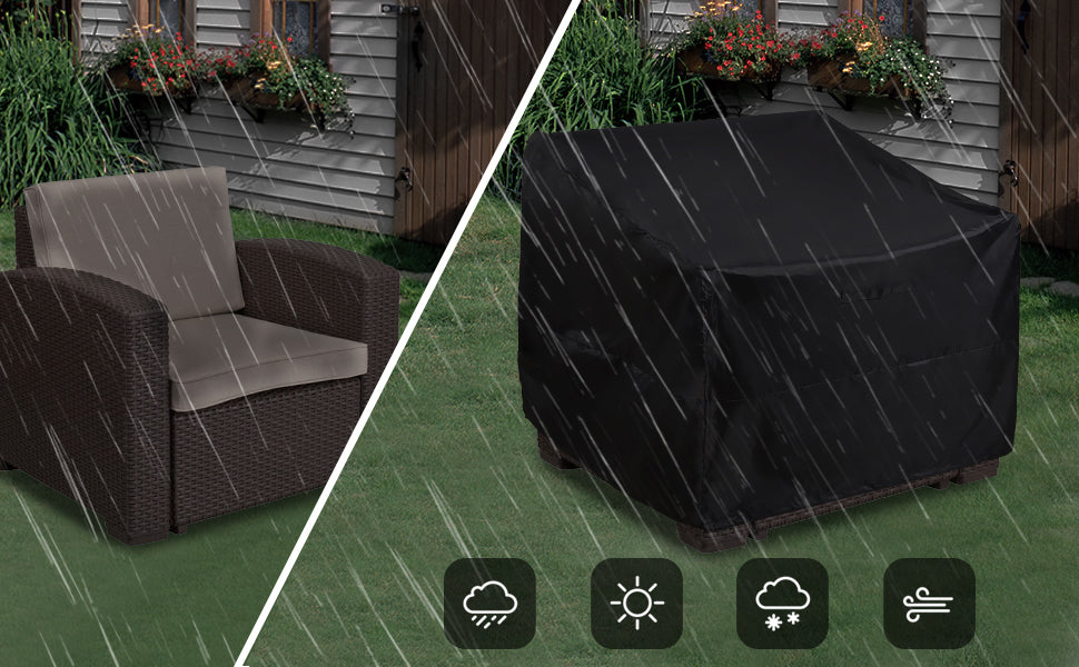 ✔️【Universal Size】 The outdoor sofa covers measures to be 97x79x74cm, this outdoor chair cover is fit for most types and brands of outdoor chairs. Please measure your furniture before purchasing.