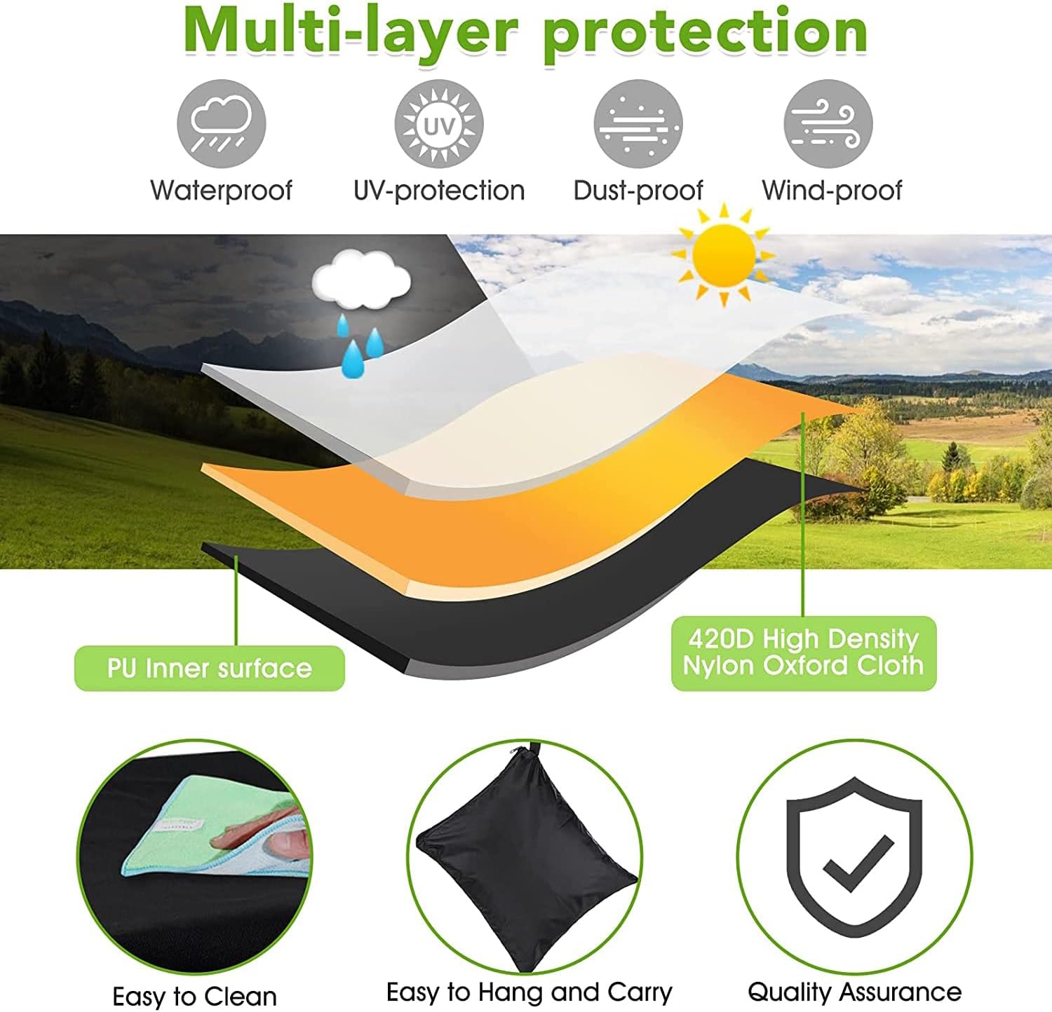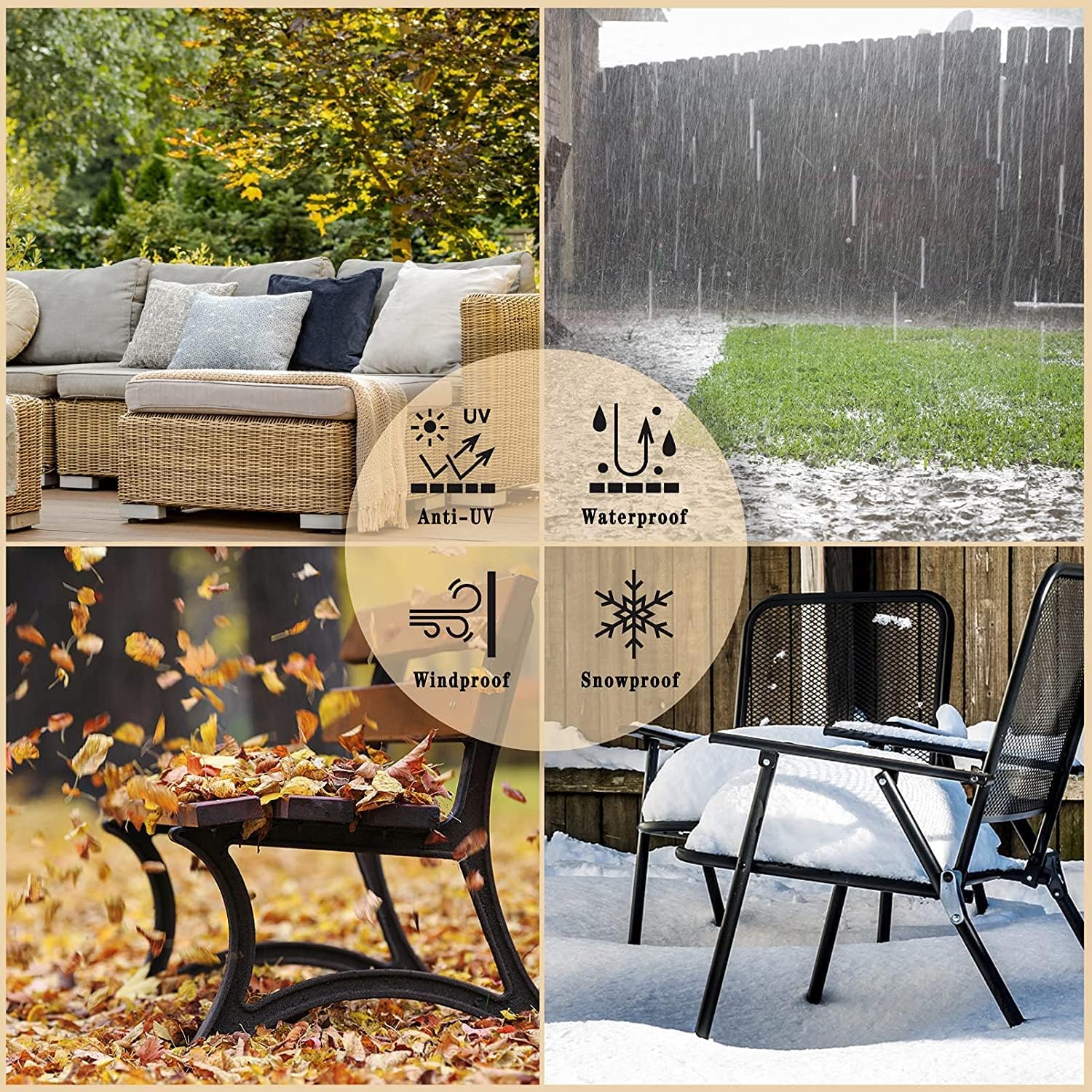 ✔️【Anti-ultraviolet】 The outdoor seat covers for outdoor furniture provided adopts the new anti-ultraviolet titanium silver coating technology, which can solve the problems of traditional outdoor patio chair covers fading, poor water resistance, cracking and so on.