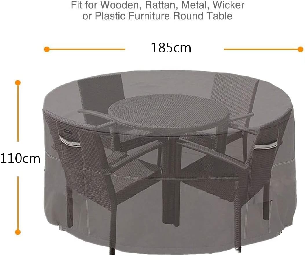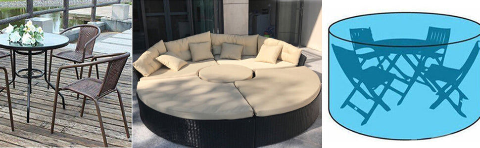 ✔️【Universal Size】 Universal design covers the outdoor dining table and chairs of different styles and brands. 185x110cm. The size design of outdoor table cover meet most needs of the family. Please measure your furniture before purchasing it.