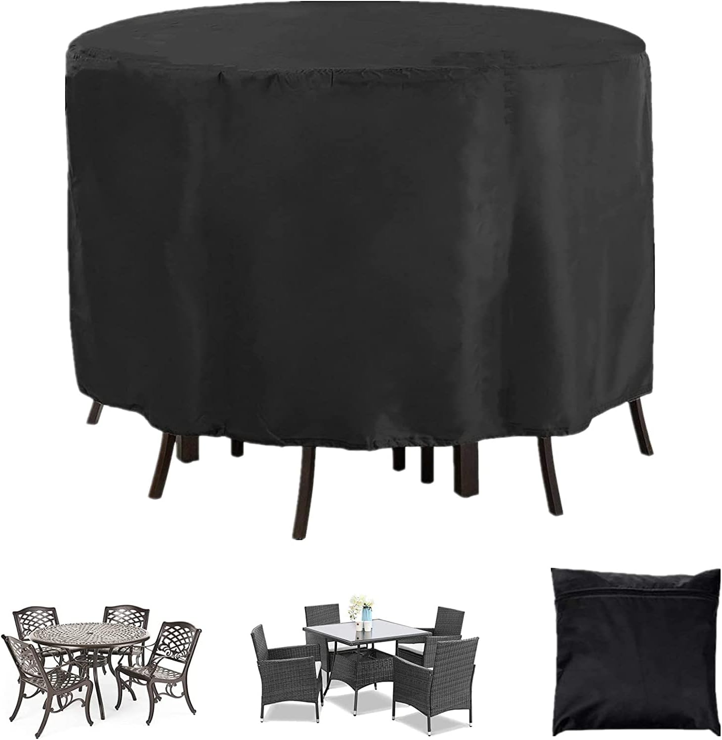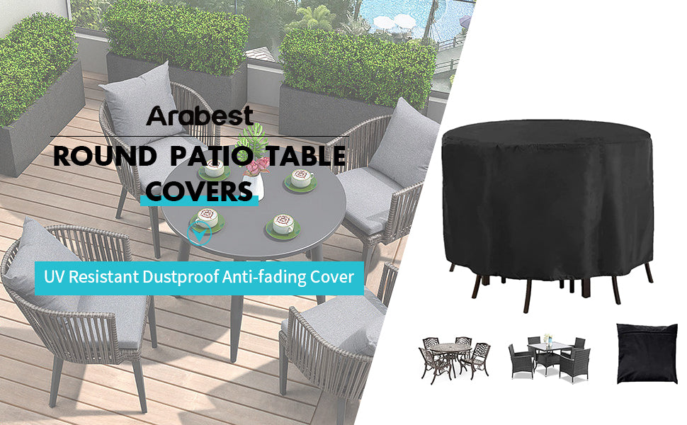 Arabest Round Patio Table Covers, 210D 72inch Outdoor Patio Furniture Cover Waterproof Garden Table Chairs Set Covers Heavy Duty Cover, UV Resistant Dustproof Anti-fading Cover (Black)