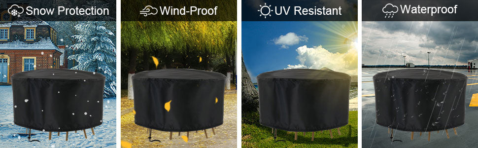 ✔️【Extra Protection】 Round patio table cover is scratch resistant and dust resistant, effectively block tiny dust on the outdoor patio covers, also effectively protects your patio outdoor covers from tree sap and bird poop, offers excellent all weather protection year around.