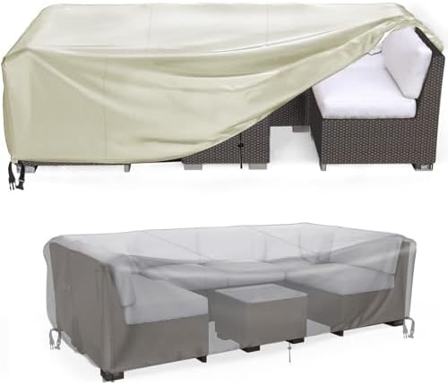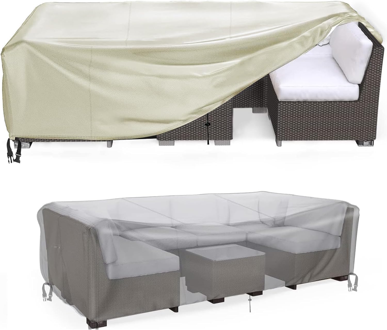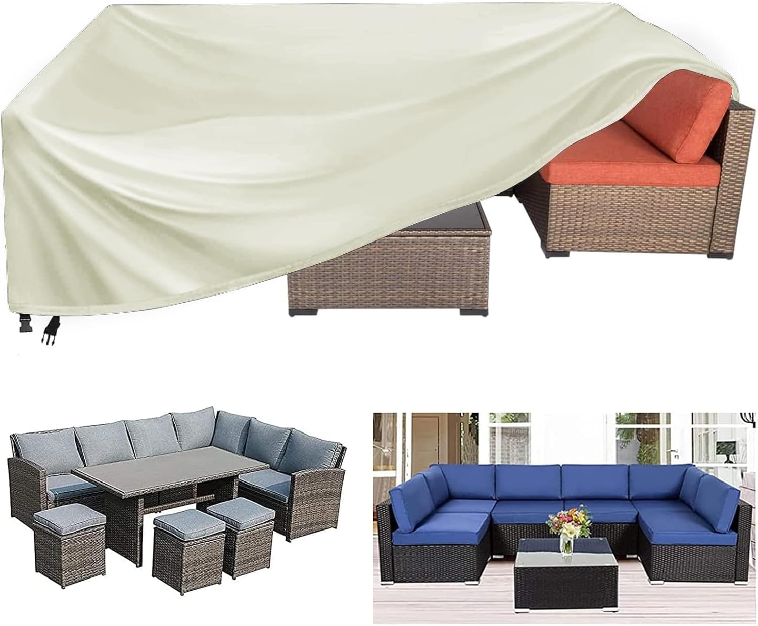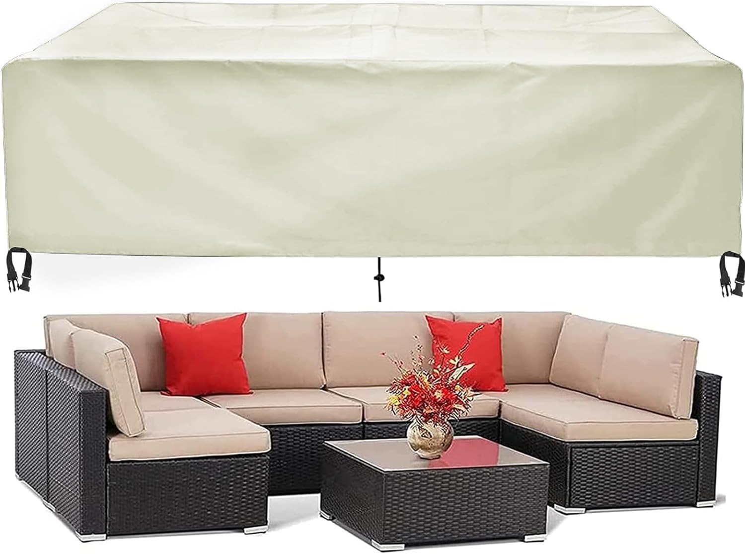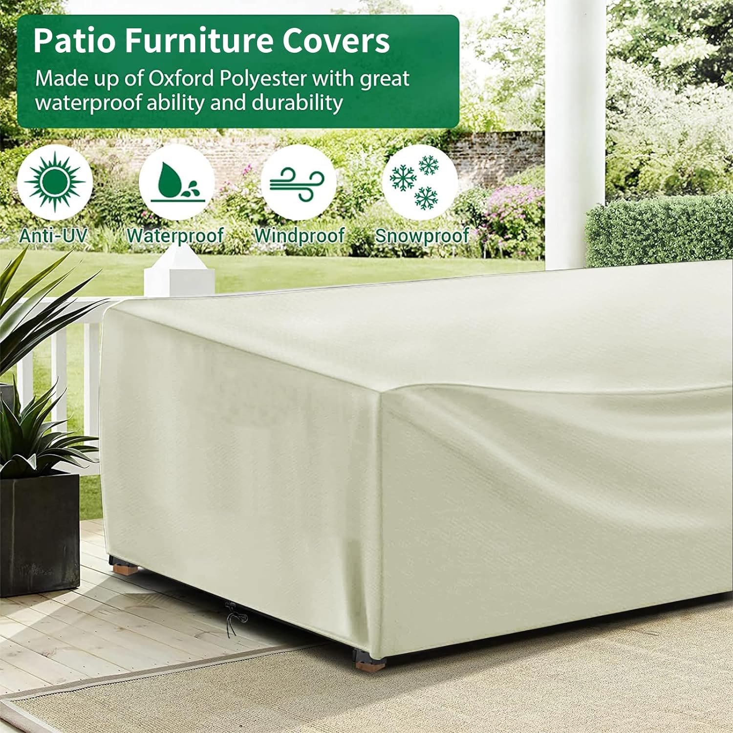 Patio Furniture Covers, Outdoor Furniture Cover Waterproof, Wind Dust Proof Anti-UV Outdoor Sofa Set Cover, Durable Protective Coffee Table Cover Rectangular 98" L 78" W 30" H (Beige)
